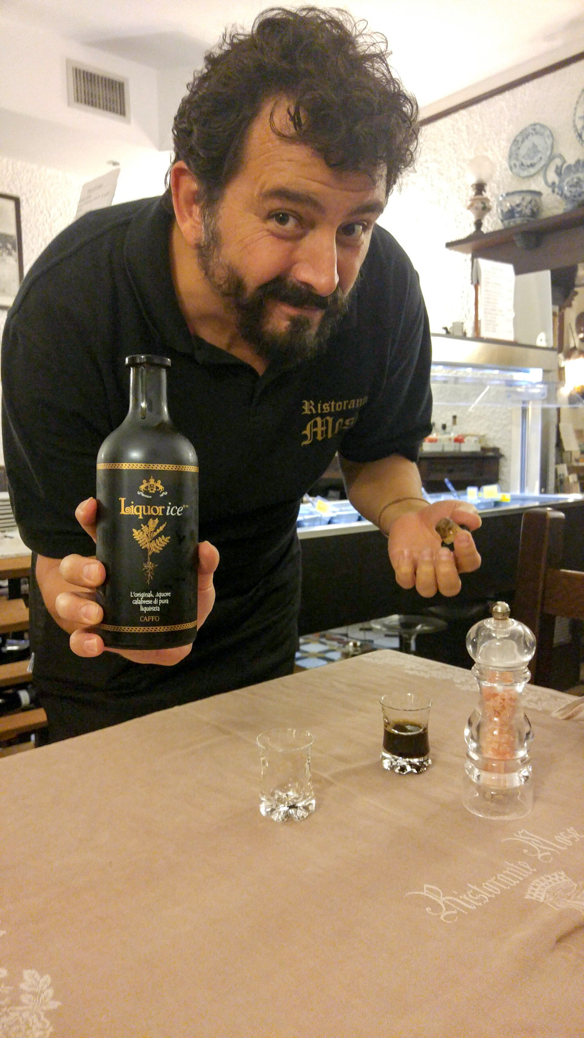 그리고, 이제 슬슬 계산하려 하니 모세 아저씨가 무언가를 꺼내온다. 리큐르 아이스라는 감초를 베이스로 한 술이다. 시칠리아 특산의 오리지널 감초주인데 북부 지방에서는 귀한 것이라면서 우리에게 한 잔 씩 서비스해준다. 지니님은 신나서 한 잔 더 마셨다. 술이지만 감기나 발열에 약으로도 마시는 약술이라 그런지 계속 몸이 안 좋던 나도 다음 날부터는 컨디션이 많이 좋아졌다. 추운 날씨에 얇은 옷으로 여행다니는 우리를 생각해서 챙겨준 듯하다. 시칠리아에서도 못 먹은 것을 여기서 먹었다.