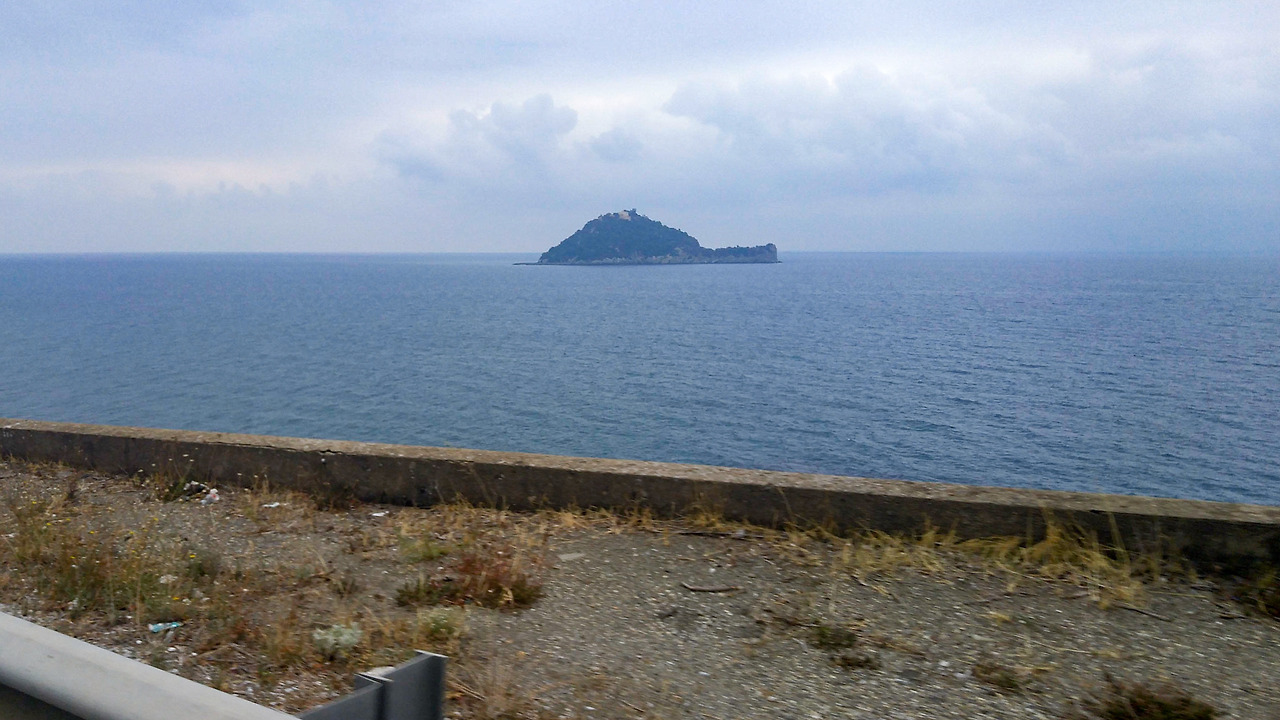 갈리나라(Isoletto Gallinara)라는 섬이 보인다. 섬이 작은데도 뭔가 건축물이 있다. 대단히 역사적인 유적은 아닌 듯하지만 자연 보존구역이다.