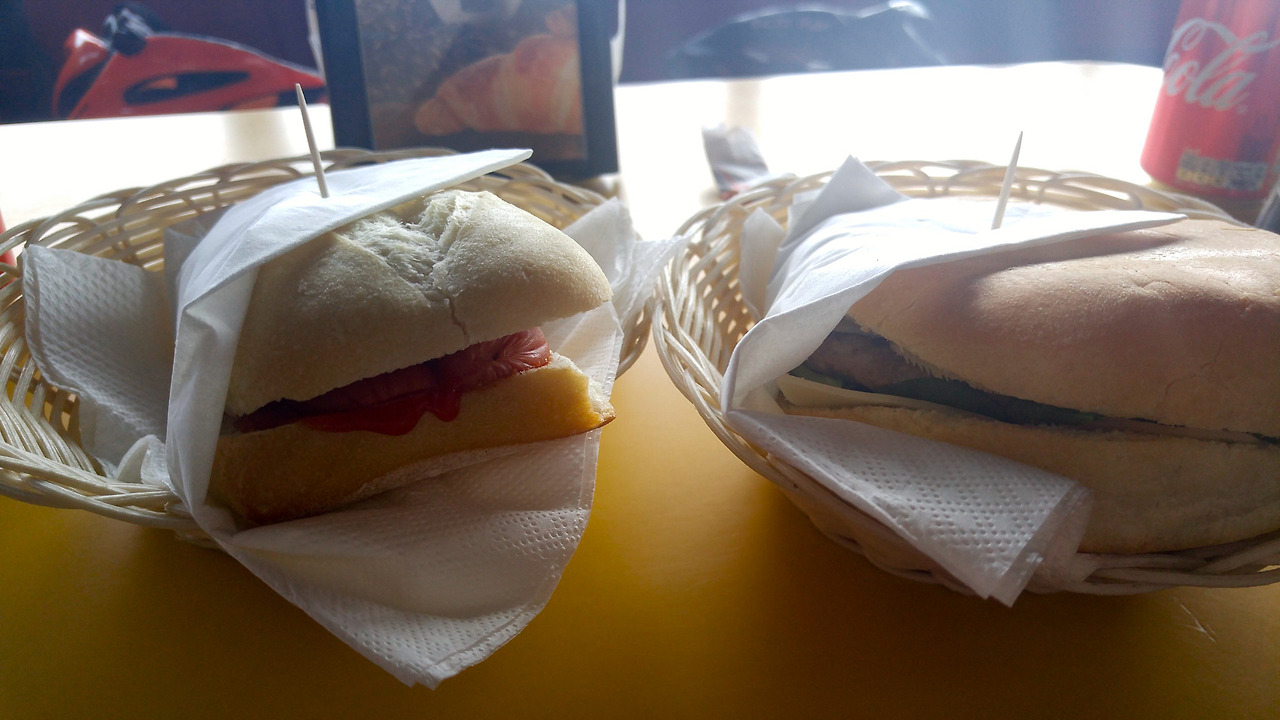 바람 부는 해변길의 오래 되어보이는 샌드위치집에서 쉬기로 한다. 철로 된 기둥에 녹쓴 흔적과 겹겹이 바른 페인트로 꽤 낡아보인다. 주방이 작아서 그런지 간단한 샌드위치와 빵 종류만 파는 곳이다.