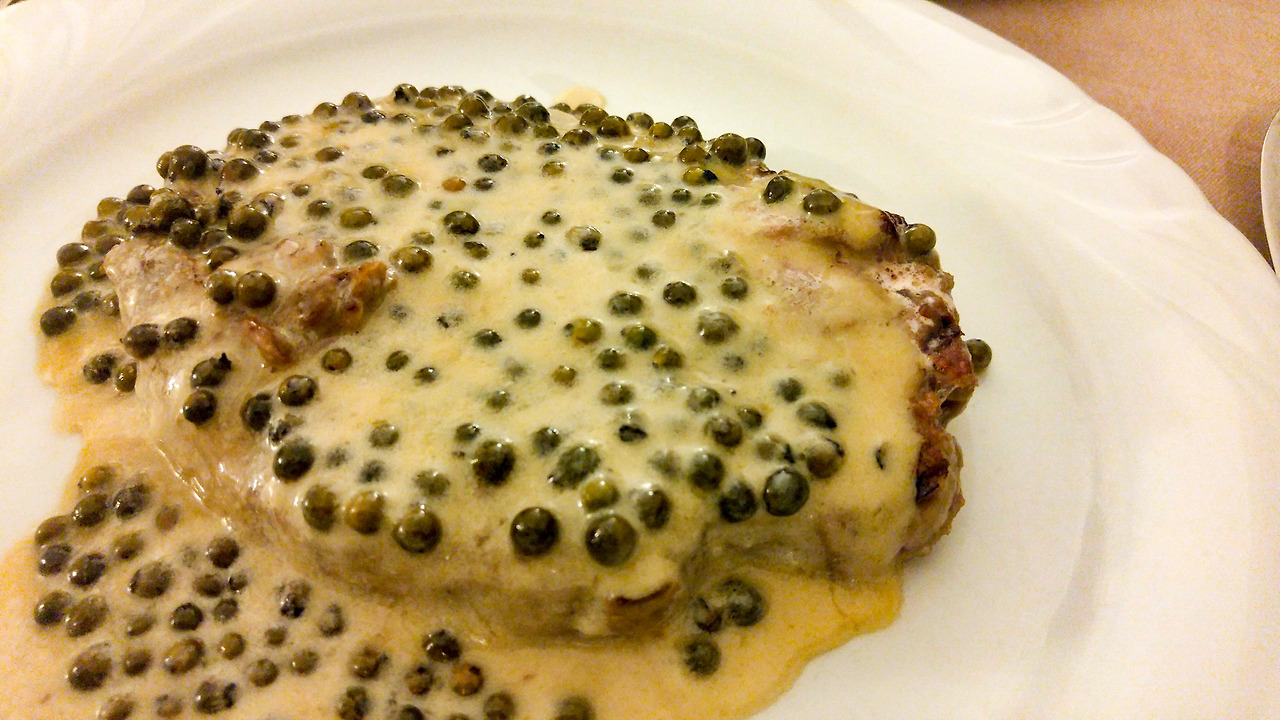 며칠 전에 먹었던 스테이크와 비슷한 녹색 후추가 잔뜩 들어간 스테이크가 나왔다. 녹색 후추가 너무 많아서 고기 맛을 방해하길래 옆으로 좀 밀어놓고 소스와 고기만 먹었다.