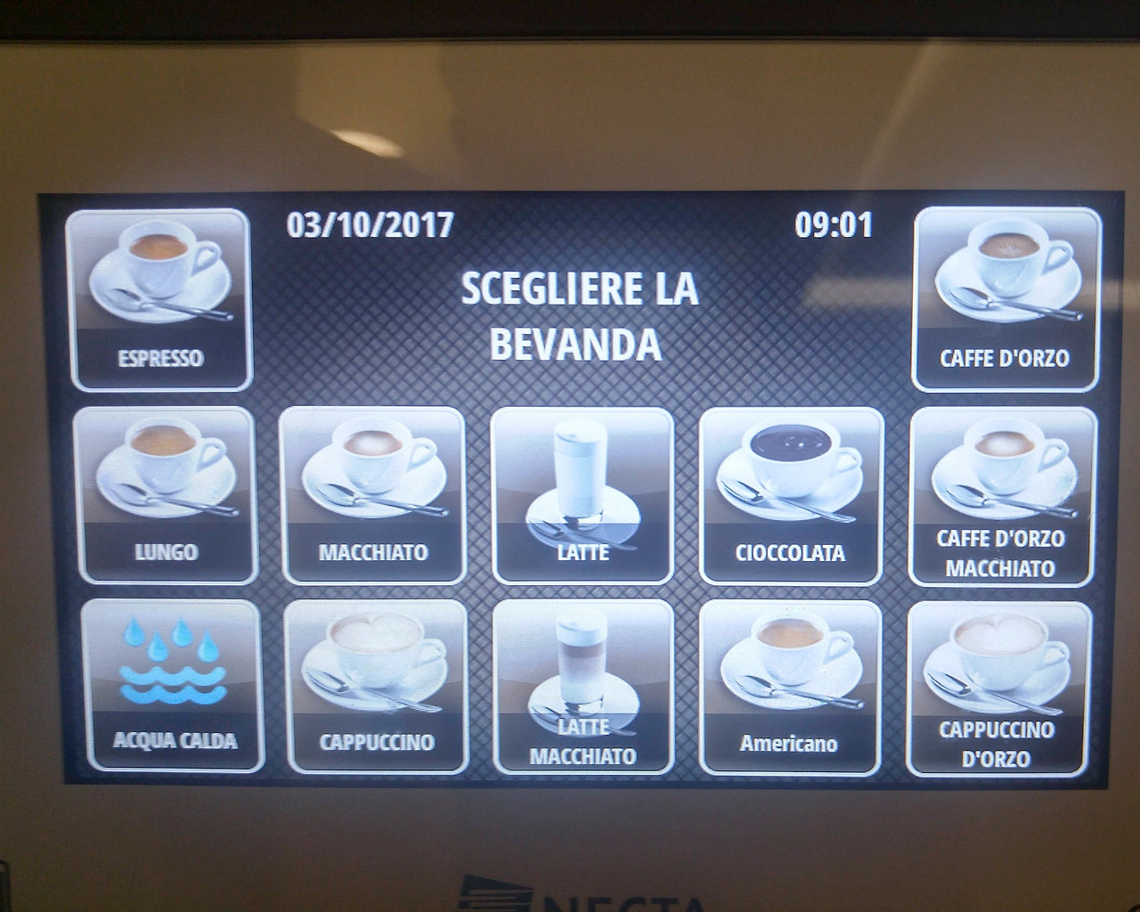 푹 자고 느긋하게 조식을 먹으러 간다. 이탈리아의 호텔에는 자동 커피 메이커가 있다. 원하는 커피를 누르면 알아서 만들어져 나오는 것이 커피를 좋아하는 사람이라면 하나 가지고 싶을 듯하다. 다른 곳에서는 커피를 거의 안 마시는 나도 이탈리아에서는 하루 두 잔 이상 마실 정도로 이탈리아 커피는 맛있다.
