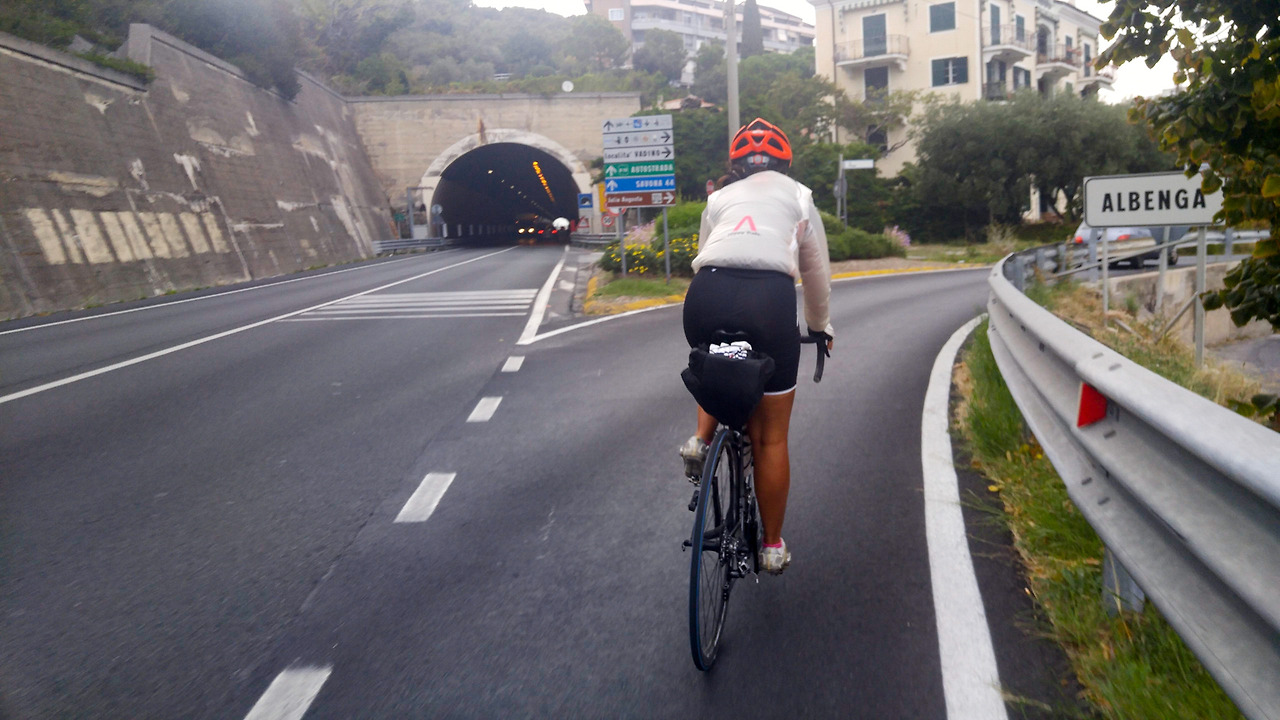 알벤가(Albenga)라는 도시는 입구부터 터널을 피해 해변으로 빠져 지나간다.