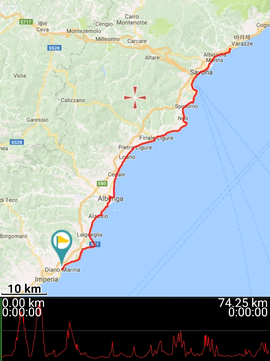 이동 경로 및 거리 : 디아노 마리나(Diano marina) - 첼레 리구레(Celle ligure) 75 km