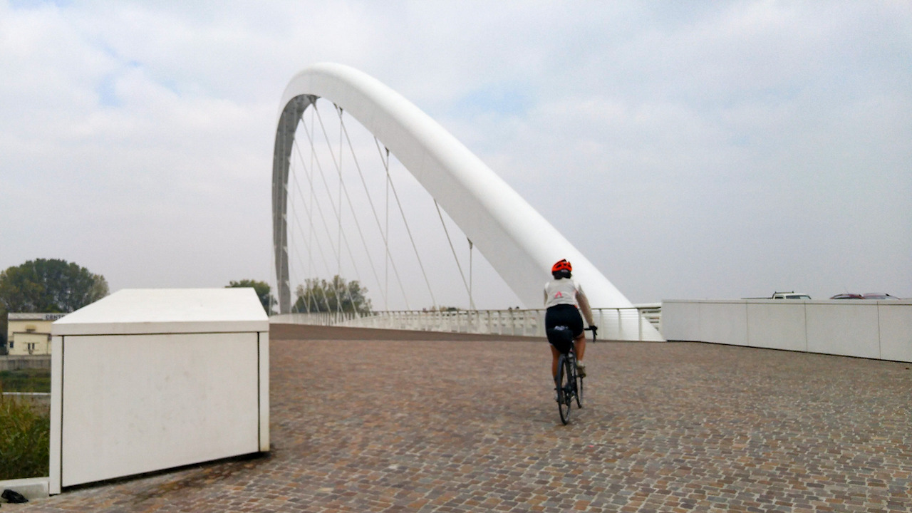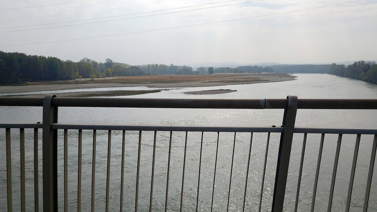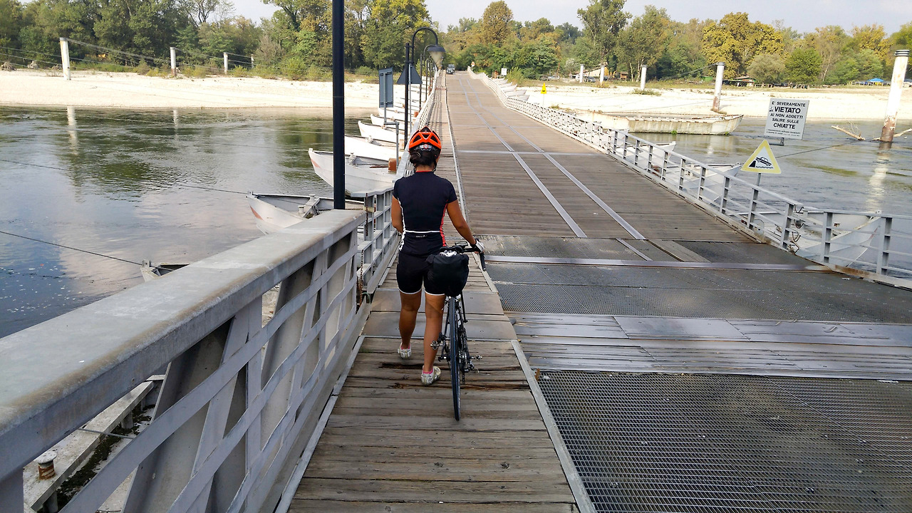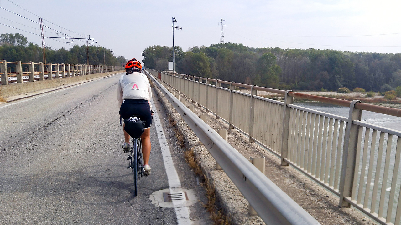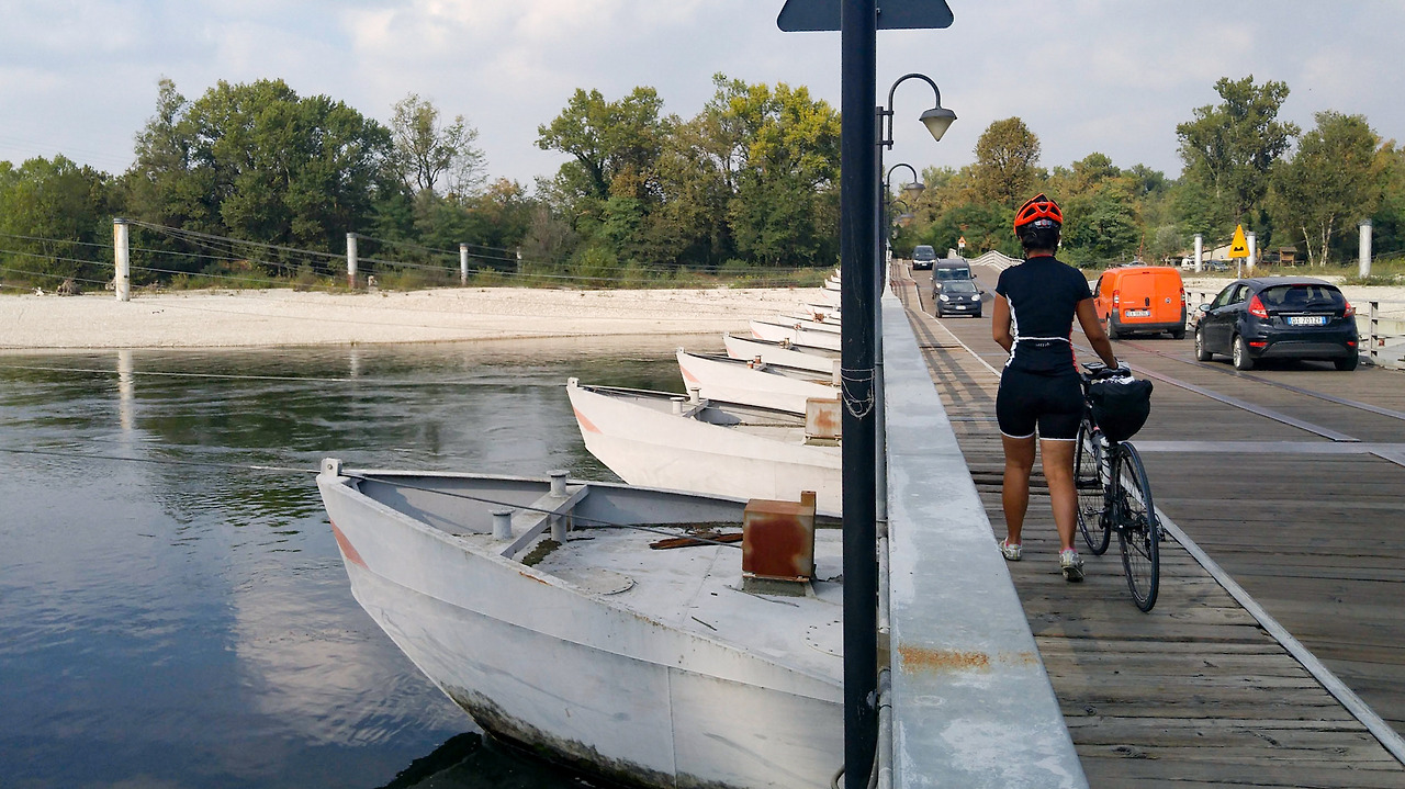 철교와 차도가 함께 있는 다리로 포 강을 넘어간다. 꽤 넓고 물이 많은 강이다.