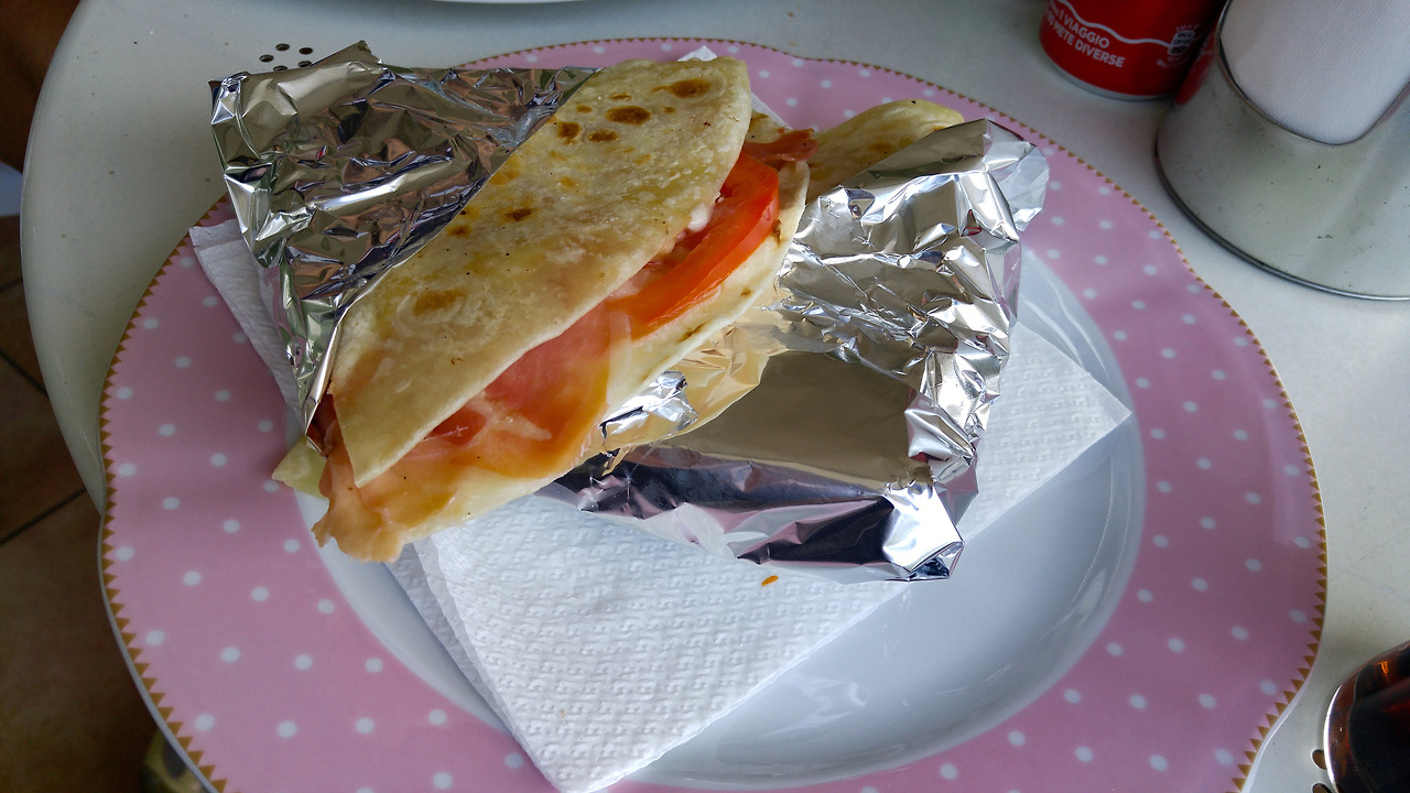 점심으로 간단히 먹을 샌드위치를 주문하려 했더니 마침 빵이 다 떨어졌다고 한다. 얇은 밀가루 전병으로 빵을 만들어줄 수 있다고 해서 랩같이 생긴 빵을 받아서 먹는데 오히려 샌드위치보다 낫다.