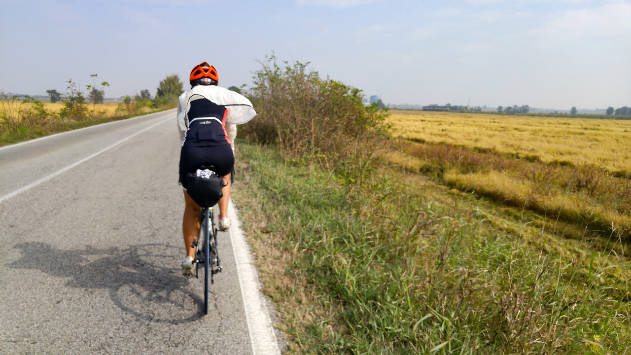 한참 허허벌판이니 매점도 식당도 거의 안 보인다. 로멜로(Lomello)라는 마을을 지나면서 보니 마을 안의 카페나 식당은 모두 동네 노인들이 차지해서 시끄럽다. 수십 년 동안 같은 동네 살면서 매일 만난 사람들끼리 할 말이 아직도 많은 게 신기하다. 로멜로를 벗어나는 곳에 조금 조용해보이는 카페가 있어 잠시 쉬기로 한다.