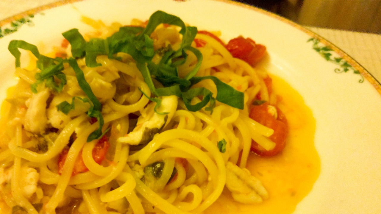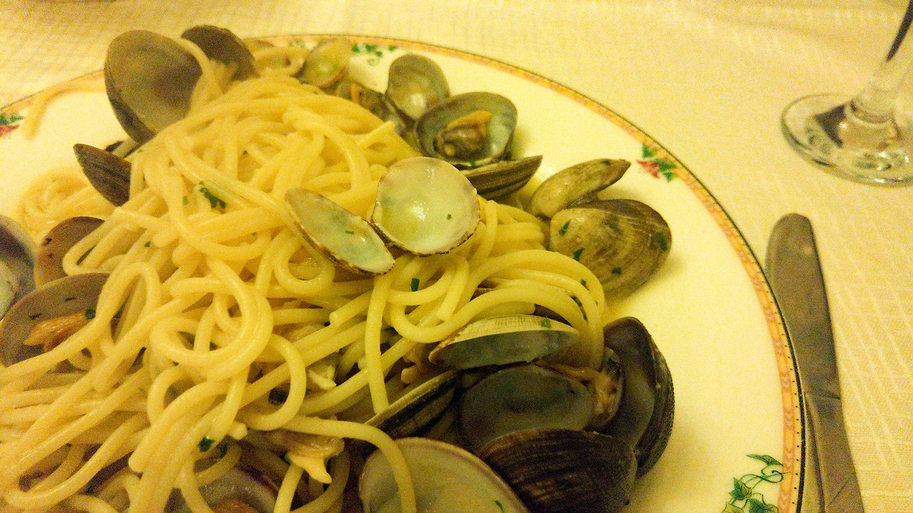 지니님은 토마토를 곁들인 생선살 스파게티, 나는 봉골레 스파게티다.