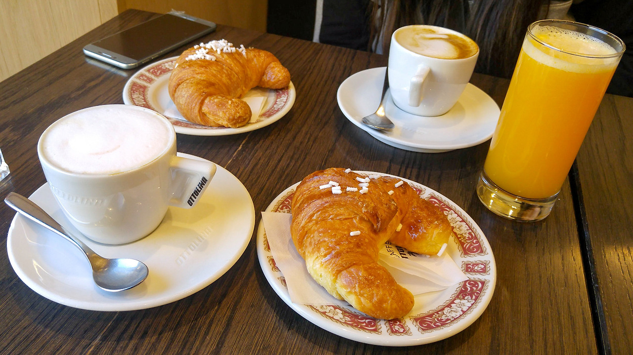 바로 트램길 건너편에 카페가 있으니 들어가서 간단히 아침을 먹으면서 쉬기로 한다. 버터가 듬뿍 들어간 맛있는 크로와상과 카푸치노, 그리고 오렌지 쥬스를 먹는다.