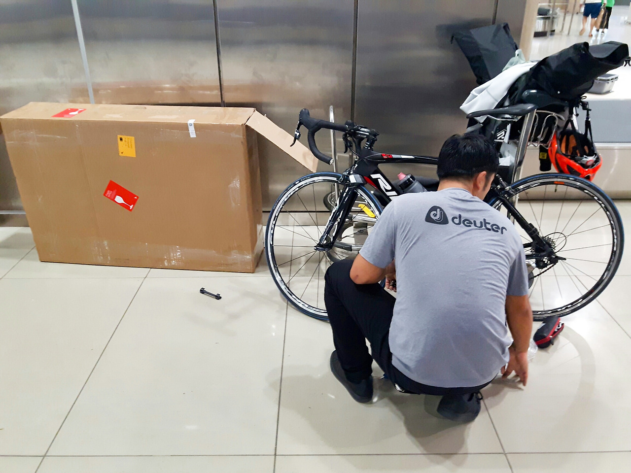자전거를 바로 조립해 보았더니 다행히 문제는 없었다. 지난번 중국동방항공을 이용할 때 파손사고로 비행기 수하물에 예민해져 있었는데 이번 항공사는 중국동방항공처럼 짐을 험하게 다루지는 않은 것 같다.