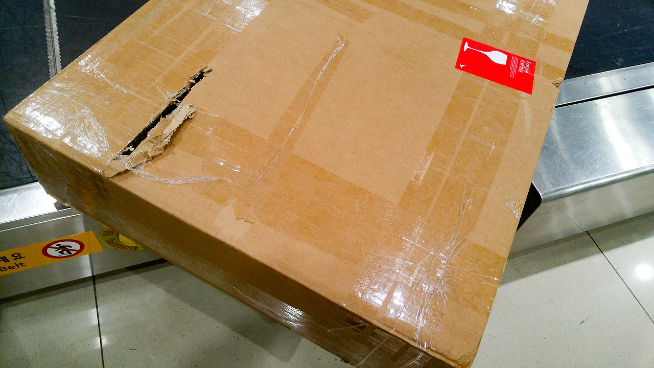박스를 살펴보니 신경 쓰이는 상처가 나있다. 이럴 때는 상처 난 곳의 사진 촬영을 꼼꼼히 하고 출국장을 나가지 말고 짐 찾는 곳에서 바로 열어봐야 한다.