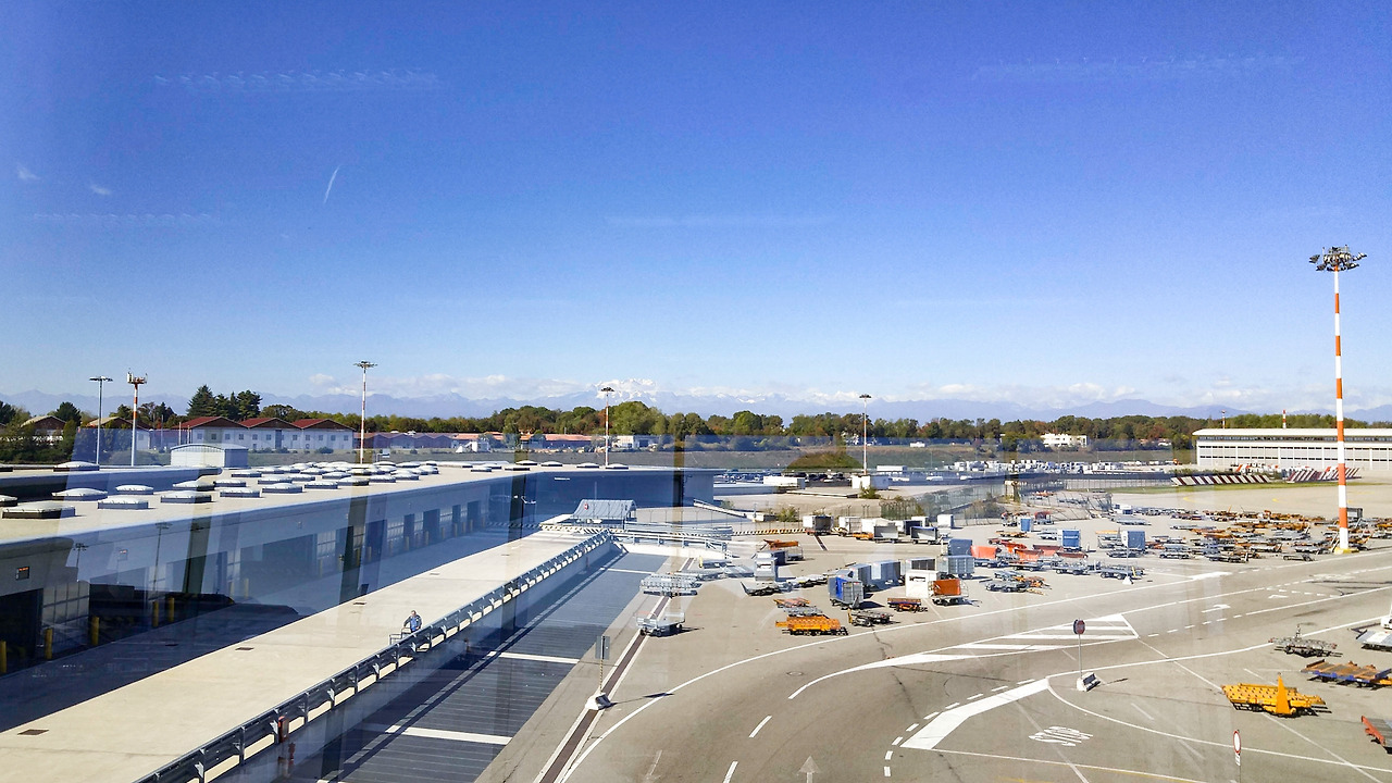 탑승 게이트 근처에 앉아서 창밖을 보니 밀라노 공항에서 저 멀리까지 평지가 이어지다가 갑자기 솟아오른 눈이 쌓인 알프스 산맥의 초입이 보인다.
