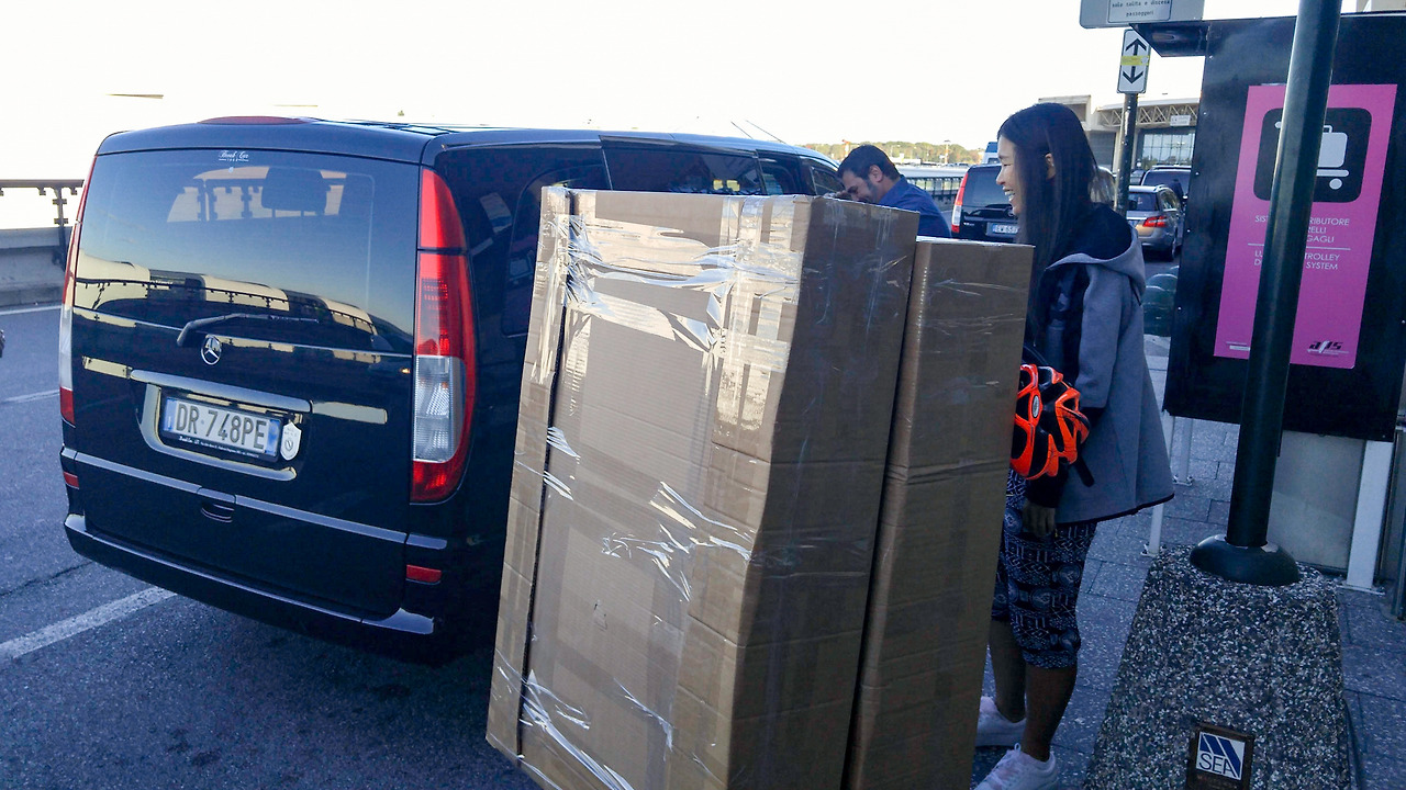 밀라노 말펜샤 국제공항은 우리나라 인천공항이 서울에서 멀리 떨어져 있는 것처럼 밀라노 시내에서 꽤 떨어져 있다. 호텔과 밀라노 중앙역도 걸어가기엔 상당히 멀고 여기서 또 공항버스를 타고 가려니 너무 귀찮다. 자전거가 없다면 별 일이 아니지만 자전거 박스 두 개를 가지고 이동하려면 큰 일이다. 그래... 이럴 때는 돈으로 해결하자. 호텔 프런트에 요청해서 아침에 콜밴을 부르기로 한다.