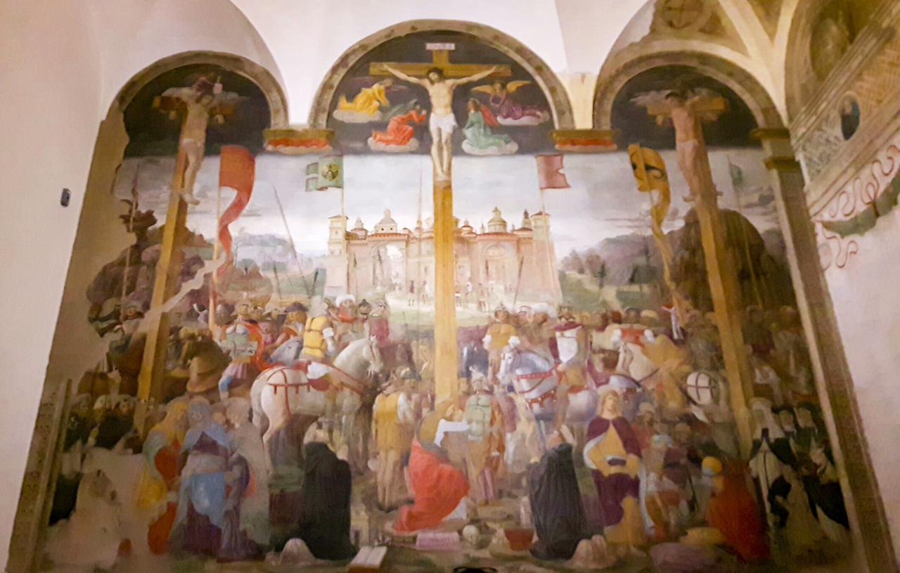 출구로 나가는 쪽인 반대편에는 도나토 데 몬토르파노라는 화가기 십자가에 매달린 그리스도를 그렸다. 세기의 명화라는 최후의 만찬에 가려져 관람객들에게 그리 주목받지는 못하지만 예수가 로마군에 체포되기 전과 후를 다루는 두 작품의 연결이 참 어울린다고 생각한다.