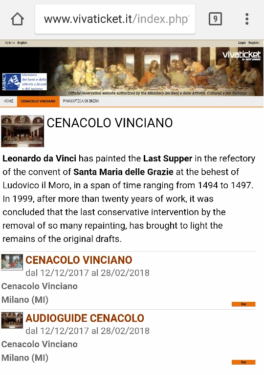 하지만, 그전에 해야 할 일이 있다. 밀라노에는 레오나르도 다빈치의 대표작이라 할 수 있는 최후의 만찬이 있다. 최후의 만찬을 보기 위해서는 비바 티켓이라는 사이트에서 미리 예약해야 한다.