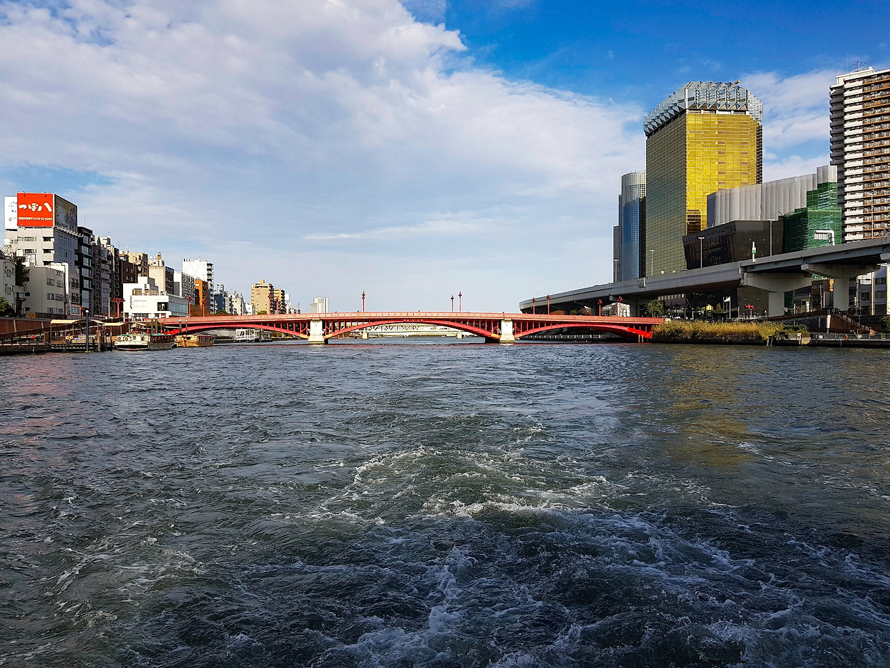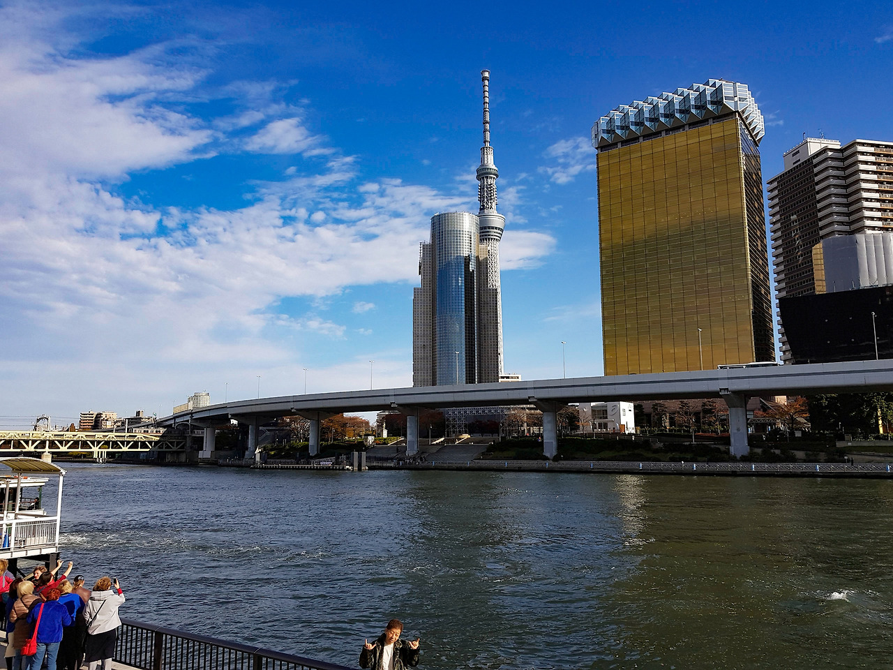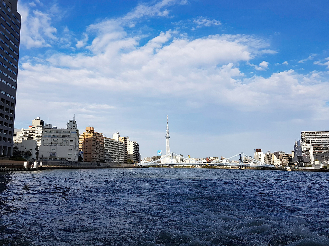 스카이트리가 잘 보이는 선착장으로 내려가서 배를 타고 중간에 한 번 갈아타야 한다.