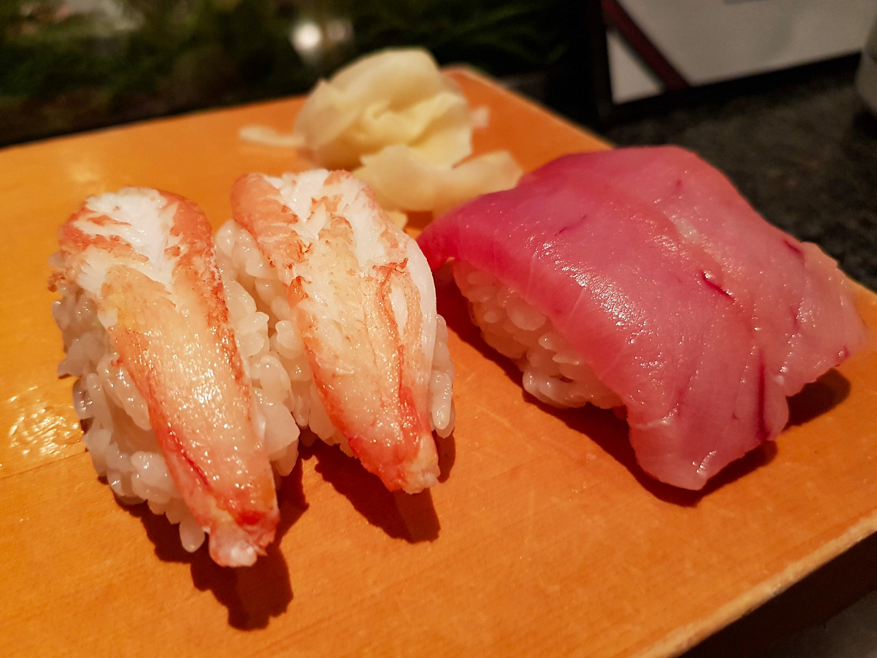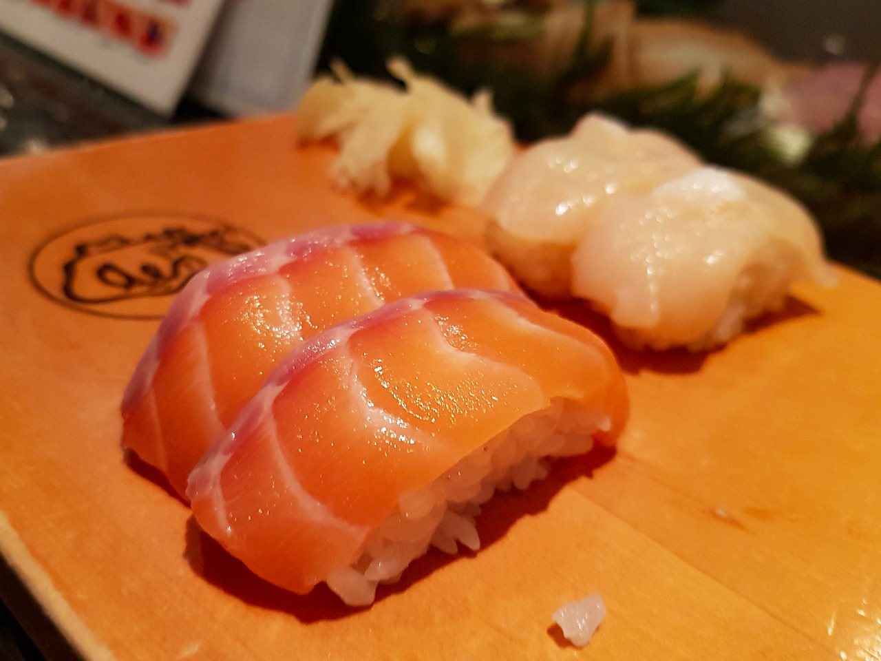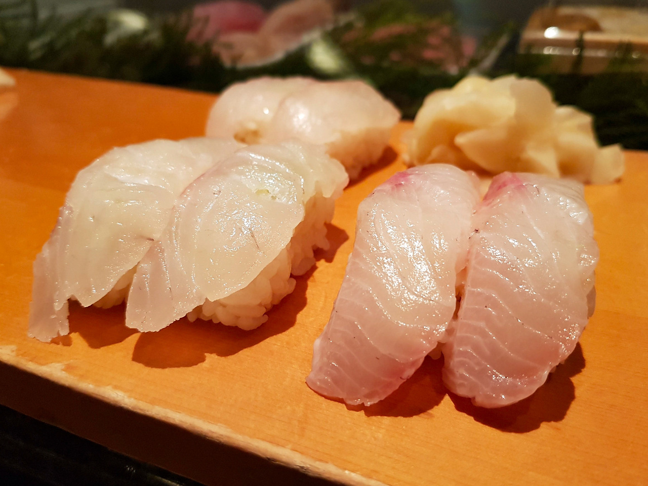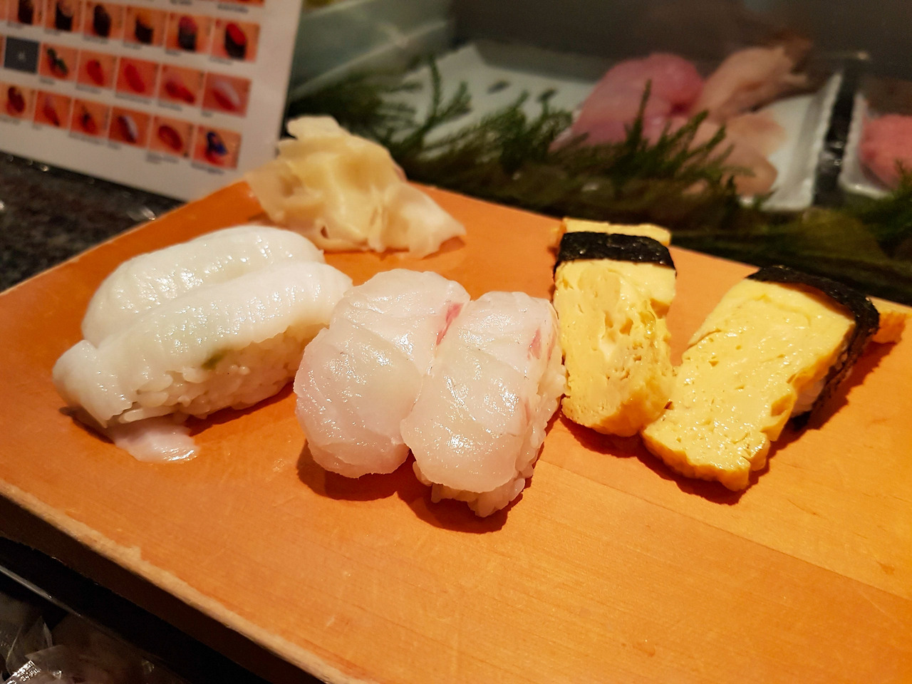 무한 리필은 여기 있는 초밥들을 세 종류 6피스 씩 주문해서 먹을 수 있다. 마구 주문하는 것이 아니라 순서대로 한 명씩 주문을 받고 바로 초밥을 쥐어주면 먹으면서 다음 차례에 무얼 먹을지 골라놓는다. 옆의 4인 가족들과 번갈아 가면서 주문을 한다. 여기 나온 재료 외에 오늘의 특상 재료로 만든 초밥은 한 번 주문할 수 있는데 오늘은 아귀였다. 우리나라에서는 거의 찜으로만 먹을 수 있는 생선을 초밥으로 먹다니...