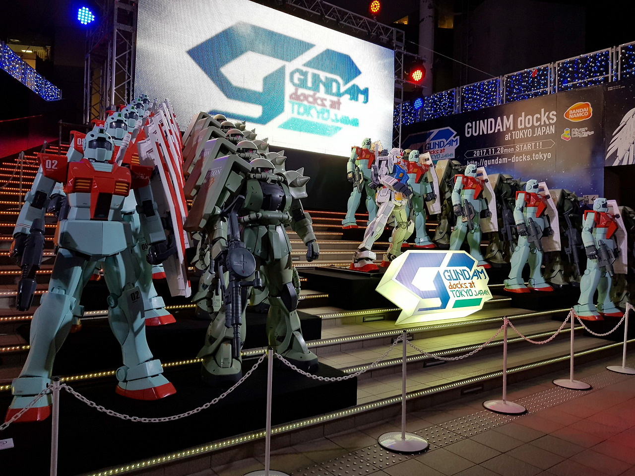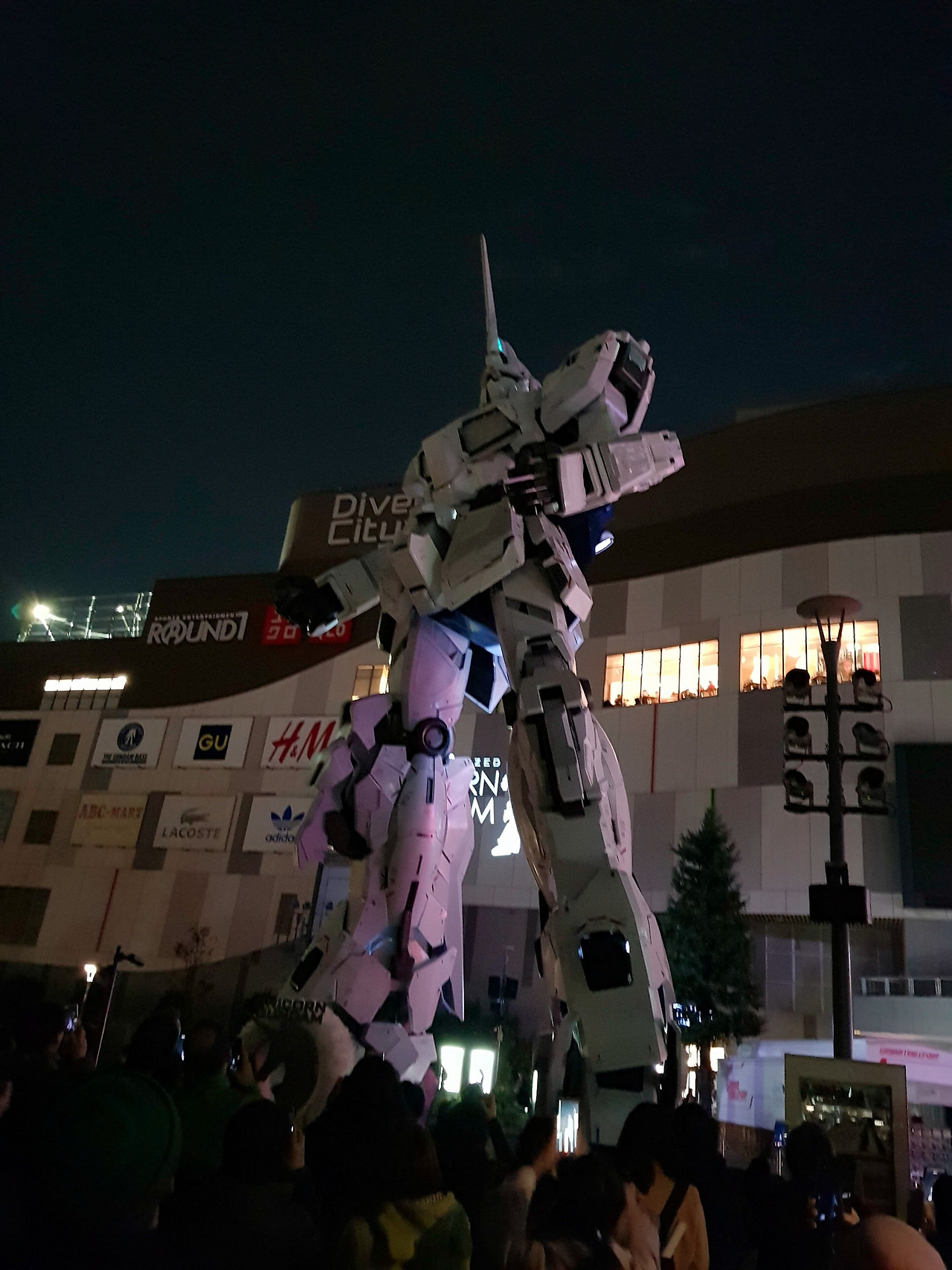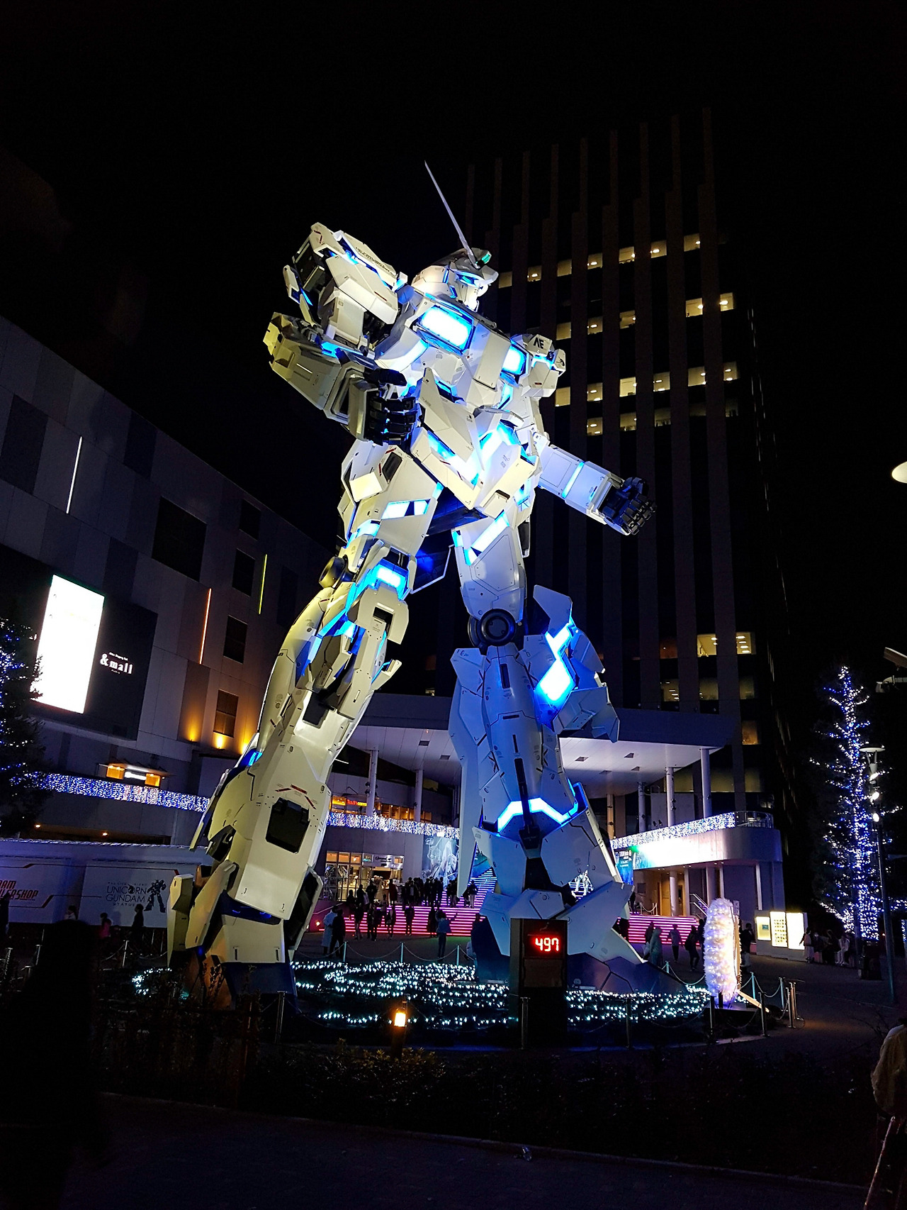 좀더 걸어가면 다이바시티 도쿄 쪽에 1:1사이즈의 건담 모형이 서있다. 예전에는 건담 시리즈의 원조라 할 수 있는 퍼스트 건담이 서있었다가 철거되고 그 자리에 비교적 최근의 건담 시리즈인 유니콘 건담이 서있다.