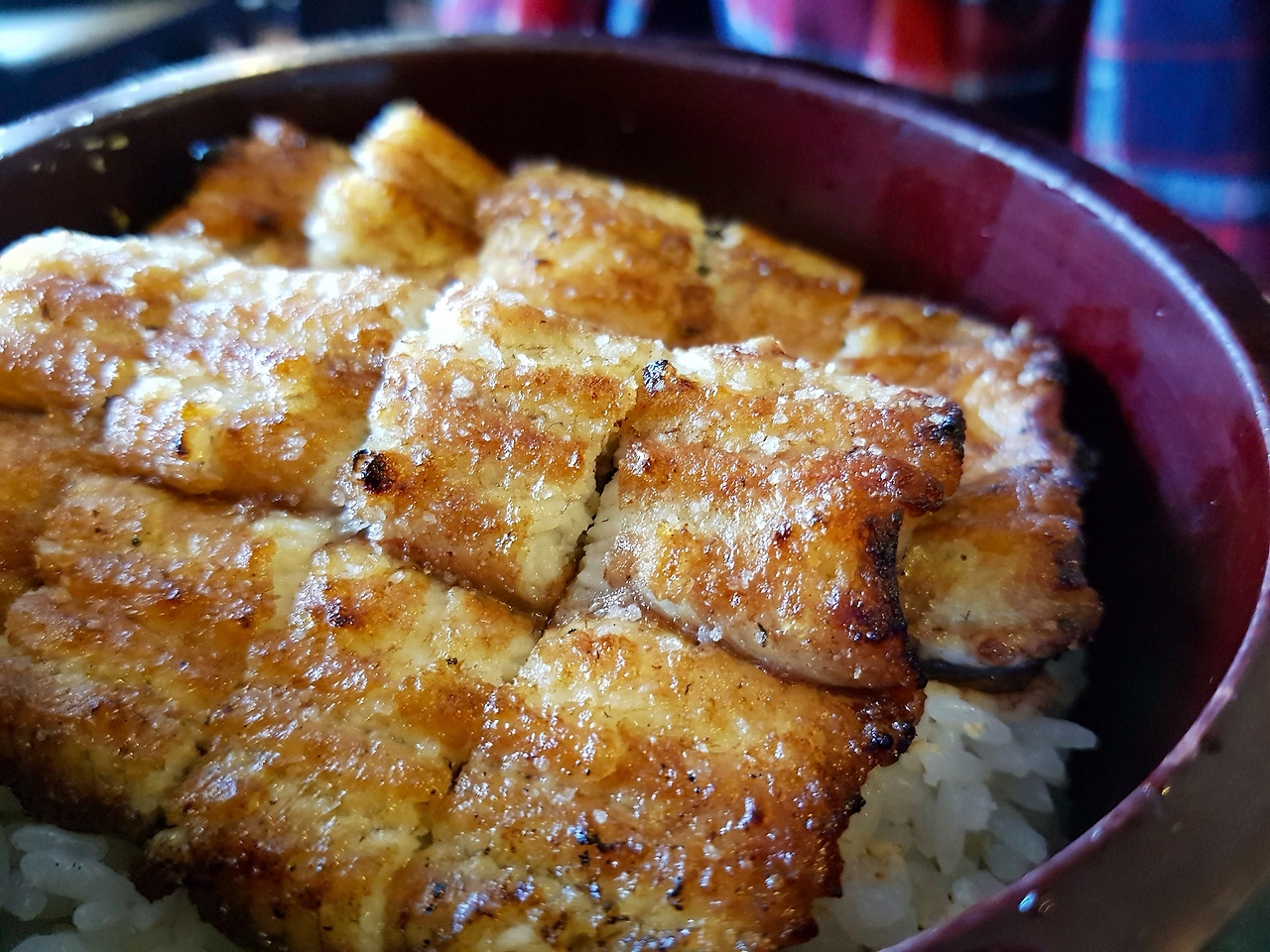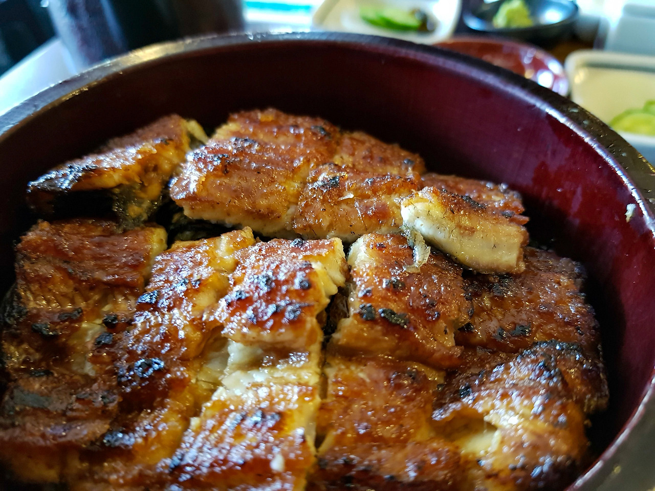 체크 아웃을 늦게 했으니 조금 일찍 점심을 먹자. 장어덮밥집에 가봤더니 문도 열기 전에 사람들이 벌써 줄을 서있다. 우리도 얼른 가서 줄을 선 덕분에 첫 타임에 식사를 할 수 있었다. 소금구이와 양념구이를 하나씩 주문했다.