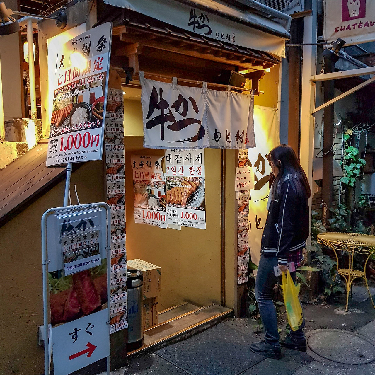 이번에 먹을 음식은 로스트비프동과 스테키동이다. 30분을 기다려서 간신히 발권기에서 표를 뽑아서 입장했다. 여기도 그렇고 다른 곳도 그렇고 무거운 캐리어를 끌고 온 사람들은 죄다 한국 여자들이다. 어찌나 든 게 많은지 식당 계단에서 다들 한참을 낑낑거린다.