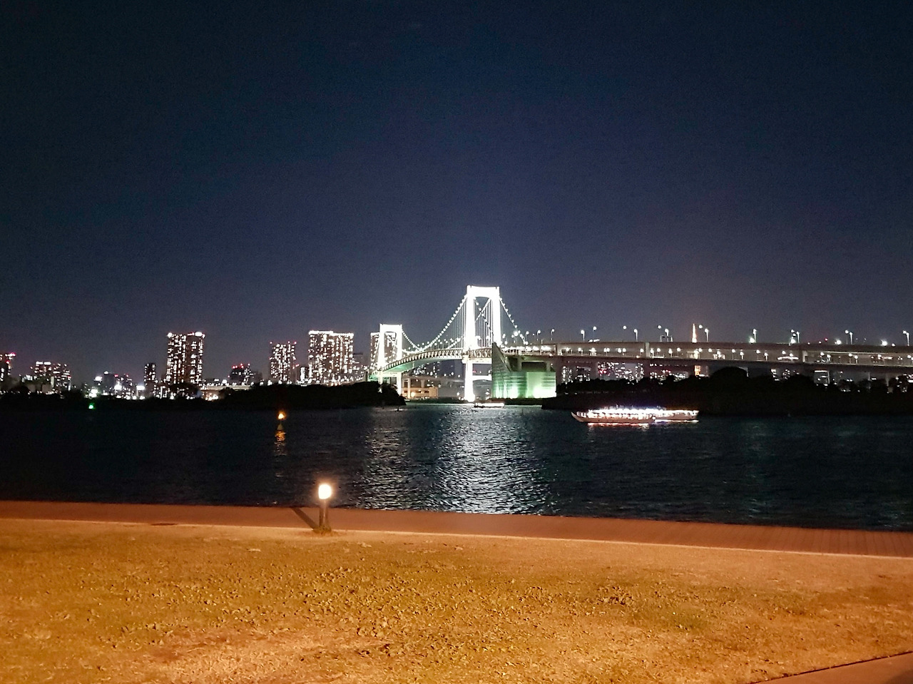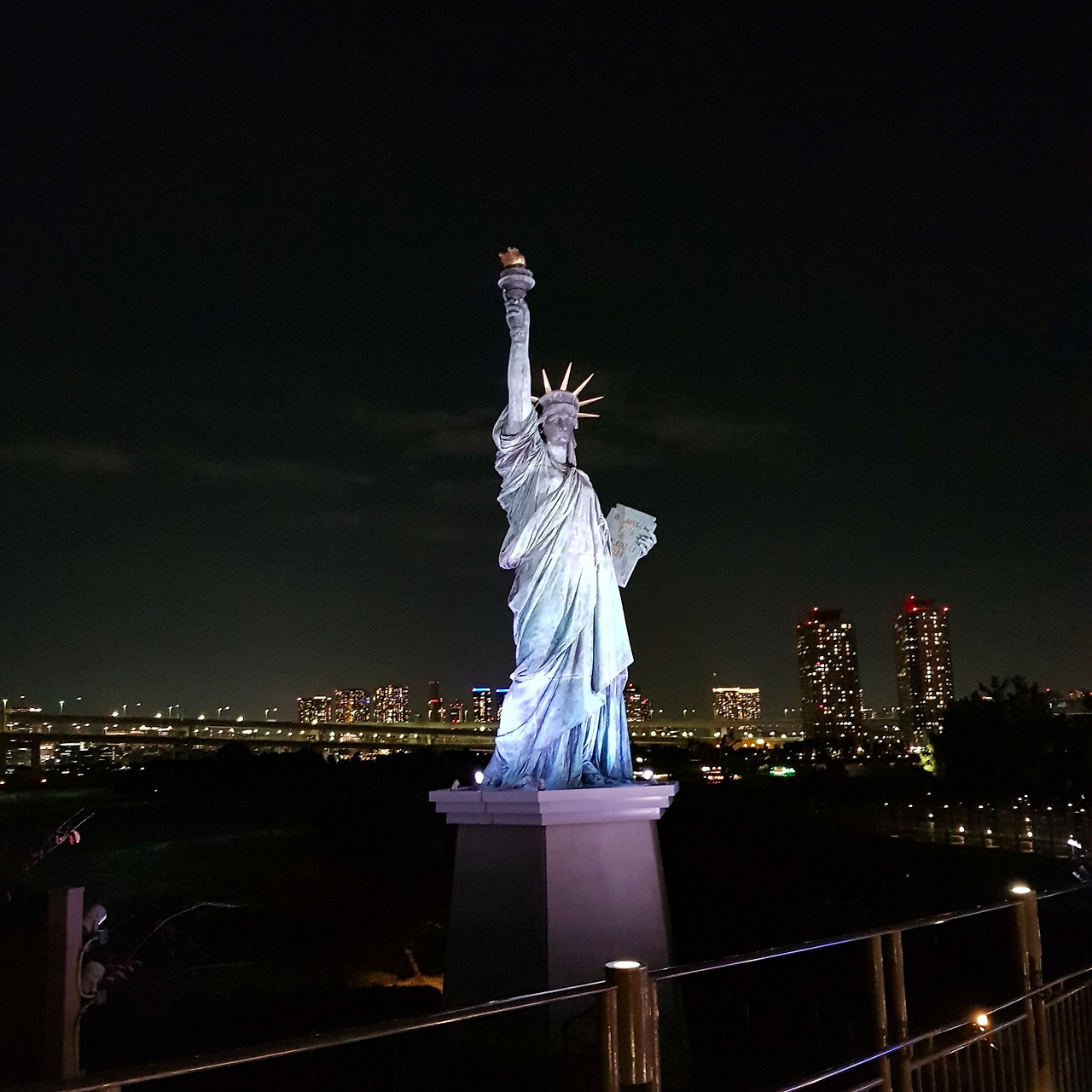 어지간해서는 과식은 안 하는 편이라 적당히 배부르게 먹었다. 식사를 마치고 나와서 오다이바를 쭉 돌아본다. 요일마다 색이 바뀌는 레인보우 브릿지가 보이는 도쿄의 야경을 즐긴다. 작은 사이즈의 자유의 여신상도 있다.