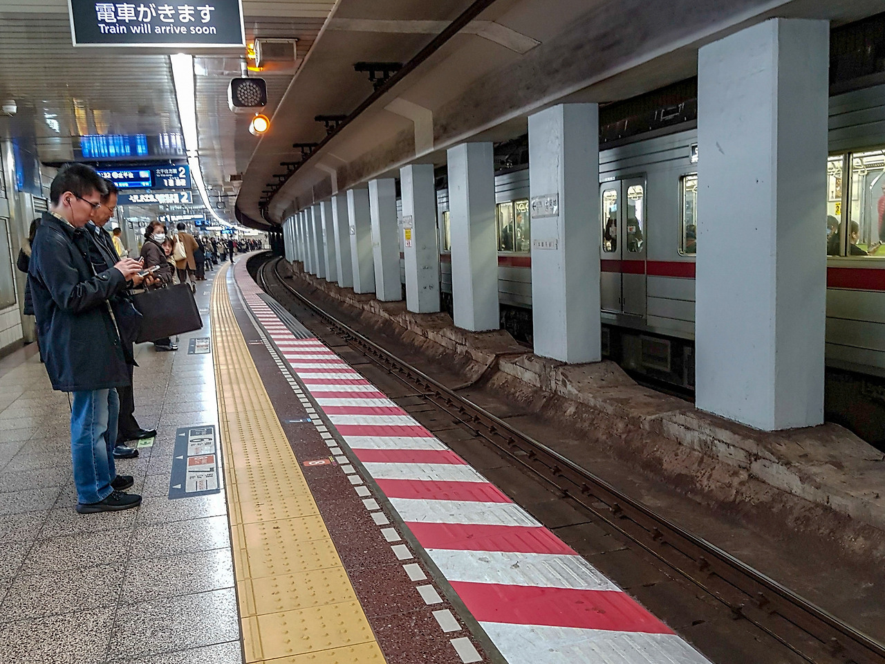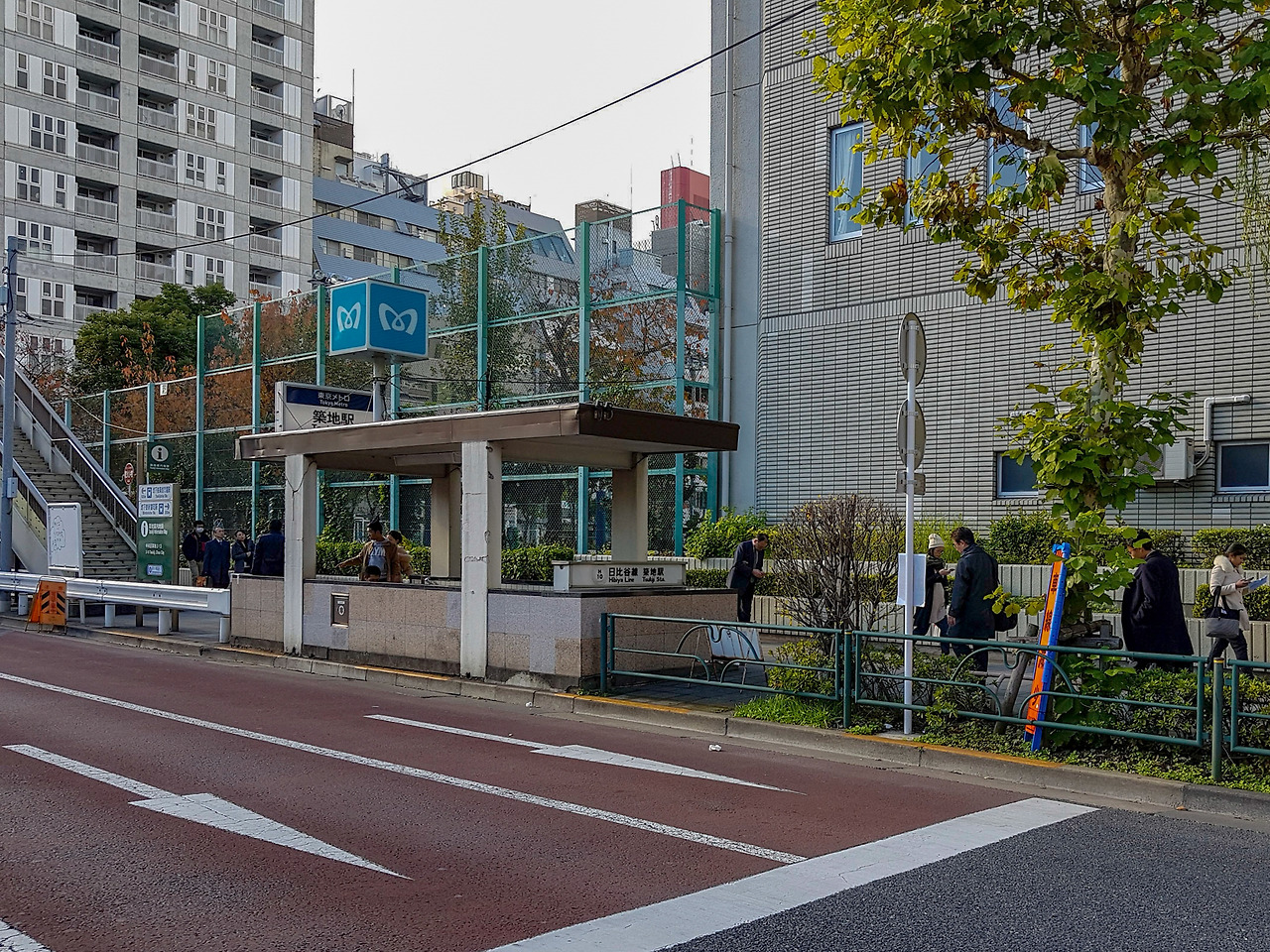 츠키지역은 지하에는 플랫폼을 선택할 수 있는 통로가 없어 출입구를 잘 선택해서 들어가야 한다. 츠키지혼간지에서는 길을 건너야 아키하바라로 가는 방향으로 들어간다.
