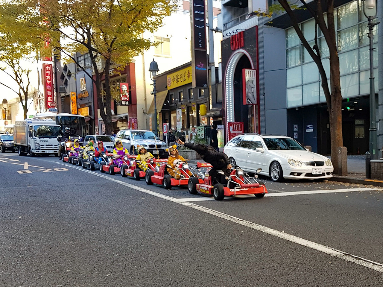 시부야의 도로에는 마리오 카트를 모방했지만 저작권료를 내지 않아 마리오 카트라는 이름을 그대로 쓰지 못하는 마리 카트가 자주 보인다.