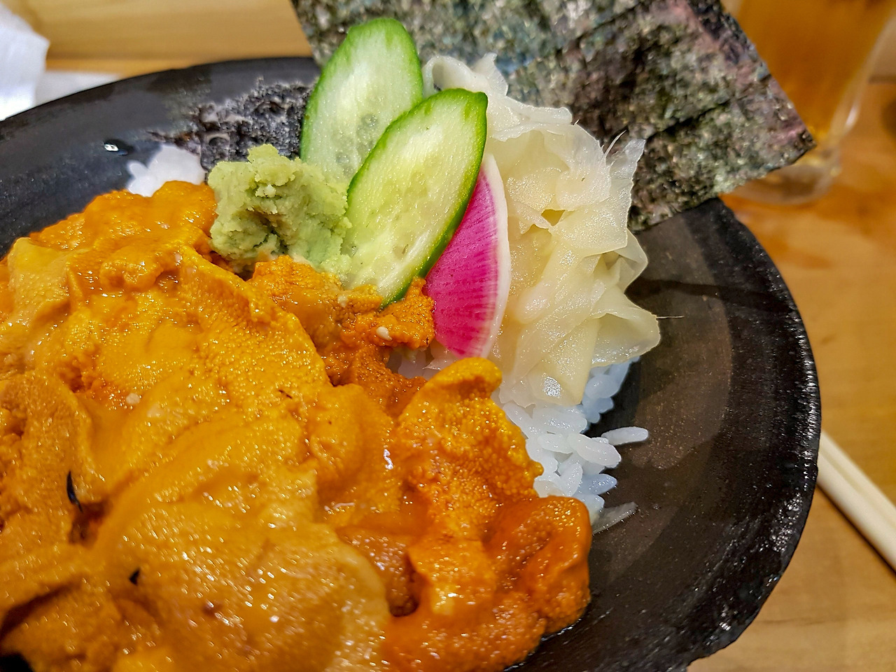 어쨌든 찾아내서 들어가 앉았다. 지니님은 그토록 먹고 싶어 했던 일본 국내산 5종 성게알 비교 덮밥을 주문하고 나는 북해도산 스페셜 성게알 덮밥을 주문했다. 사진에는 꽤 푸짐해 보이지만 실제 양은 반 인분 정도밖에 안 된다. 성게알이 부드러운 것이 맛은 있지만 한 그릇에 5,000엔이 넘어가니 가격은 상당히 비싸다. 먹는데 돈을 아끼지 않은 이번 여행에서도 가격으로나 양으로나 가장 비싼 식사였지만 충분히 맛있었다.