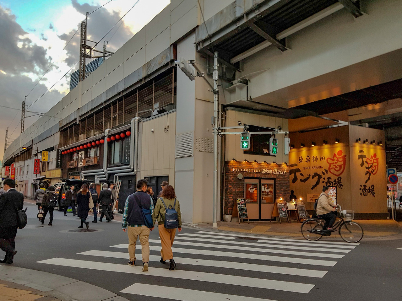 돌아다니면서 배도 꺼트렸으니 이제 저녁을 먹으러 가자. 아키하바라에서 도쿄역까지는 2.5km 정도니 시내 구경도 할 겸해서 걸어간다. 아키하바라역과 도쿄역 사이에는 간다라는 역이 있고 술집들이 쭉 이어져 있다.