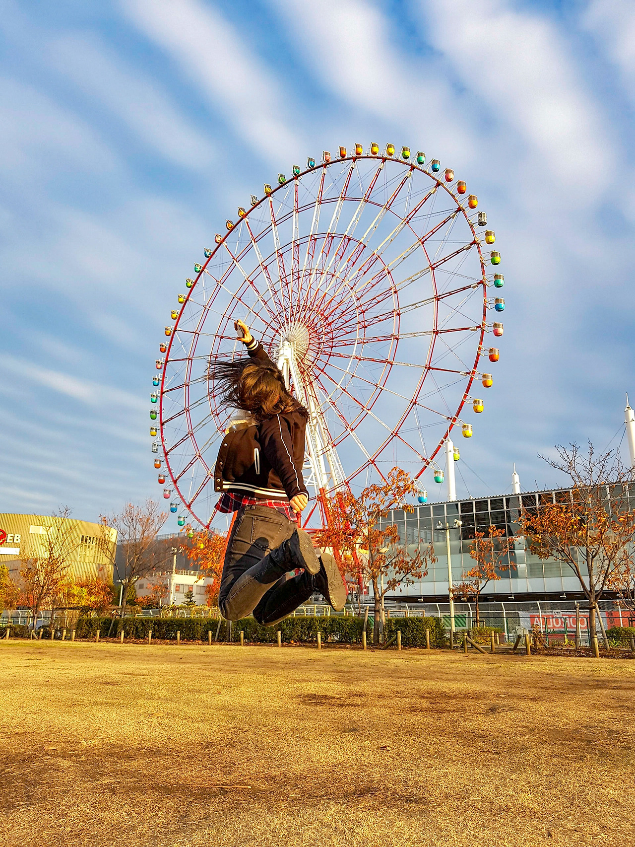 팔레트타운의 거대한 대관람차를 배경으로 점프샷도 남겨본다.