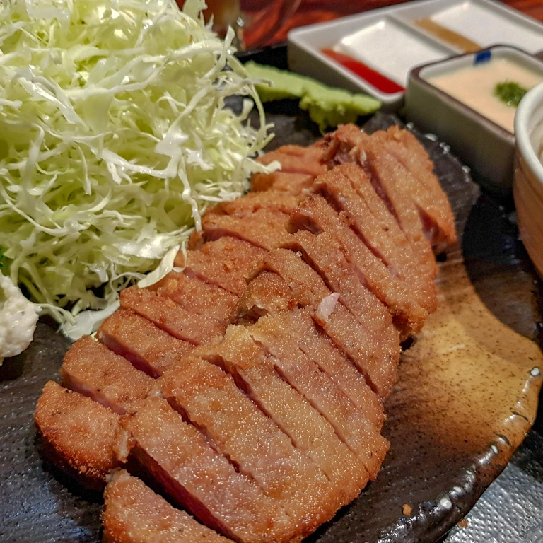 규카츠는 나온 것을 그대로 먹어도 문제없지만 함께 주는 구이판에 살짝 구워 먹으니 맛있다.
