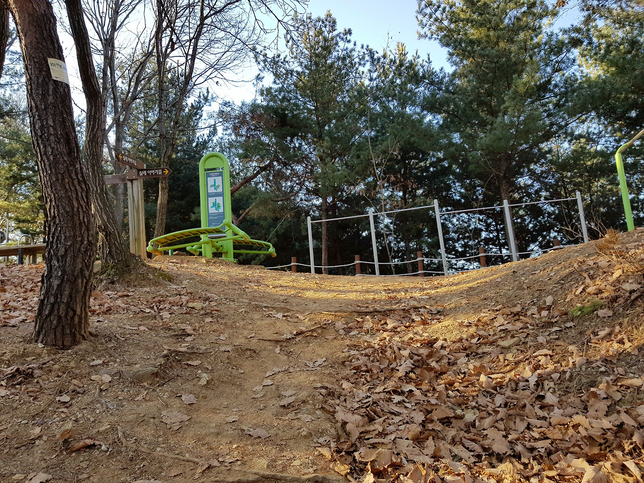 오르막길을 열심히 올라가면 정상에 운동기구들이 있다.