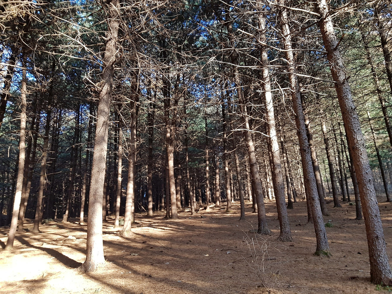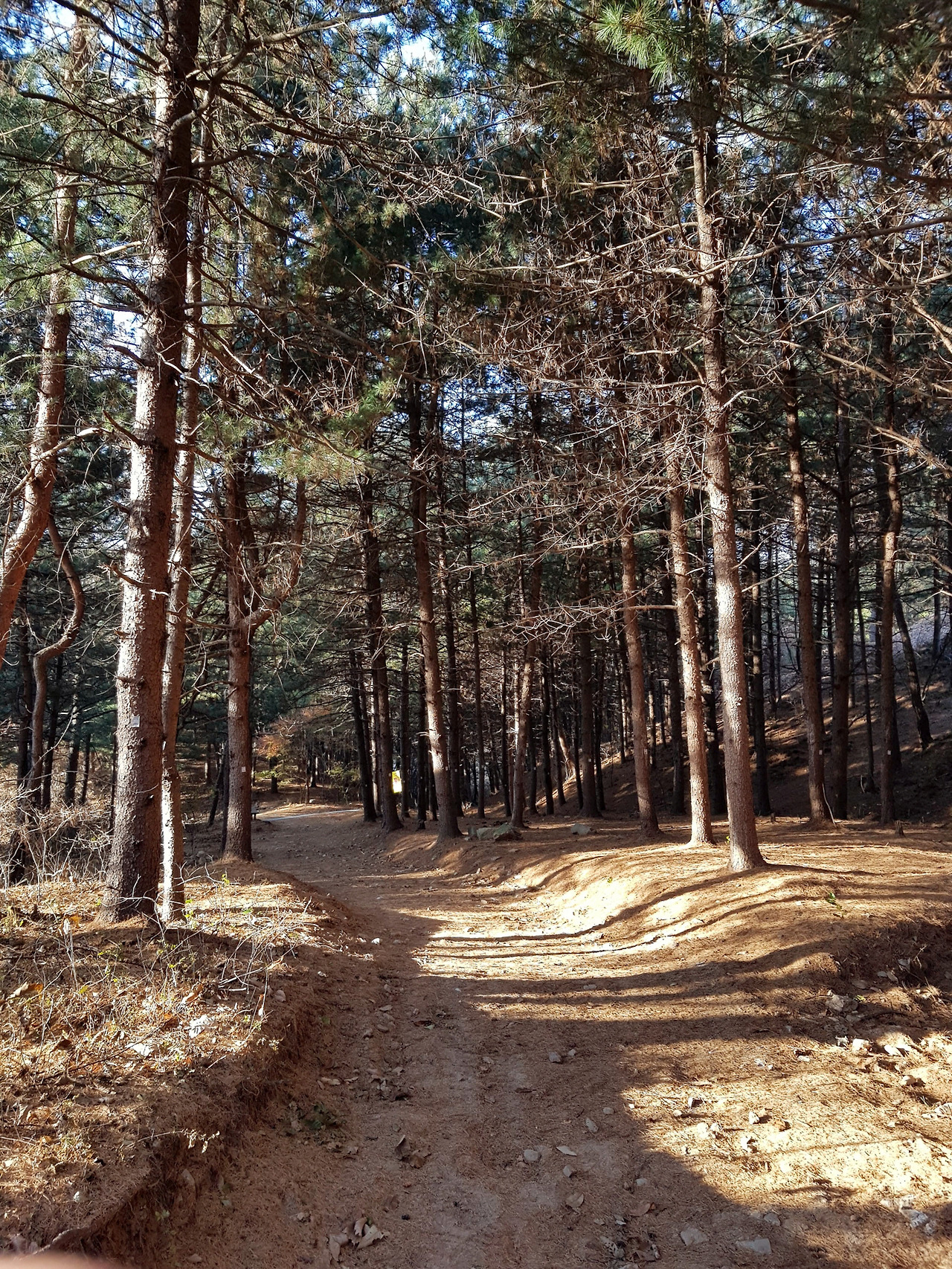 높은 나무가 쭉쭉 뻗은 호젓한 숲길이다.