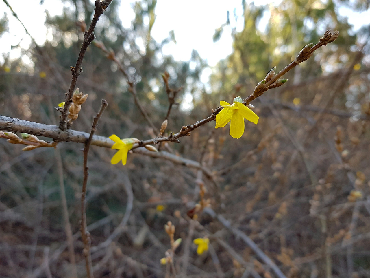 양지바른 언덕에서 따듯한 햇볕을 받은 개나리가 봄인줄 알고 피어버렸다. 네 덕분에 을씨년한 겨울에 꽃 구경을 하는구나.