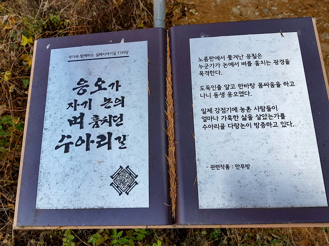 마을의 가장 큰 길인 금병의숙길을 따라 올라가면 봄내길 1코스의 입구가 있다. 금병산 등산로로 올라갈 수도 있는데 우리는 간단히 실레 이야기길만 따라 가기로 한다.