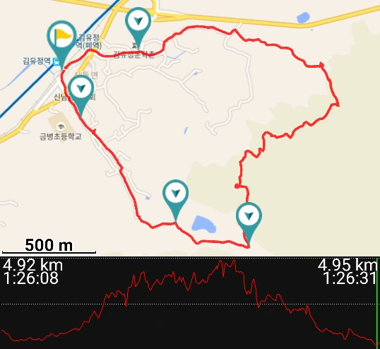 그 봄내길 1코스은 실레이야기길이다. 출발지라 할 수 있는 경춘선 김유정역은 유일하게 사람의 이름이 붙은 역이라고 한다. 전체 코스는 아래와 같이 그리 길지 않은, 천천히 걸어도 2~3시간이면 완주할 수 있는 코스다.
