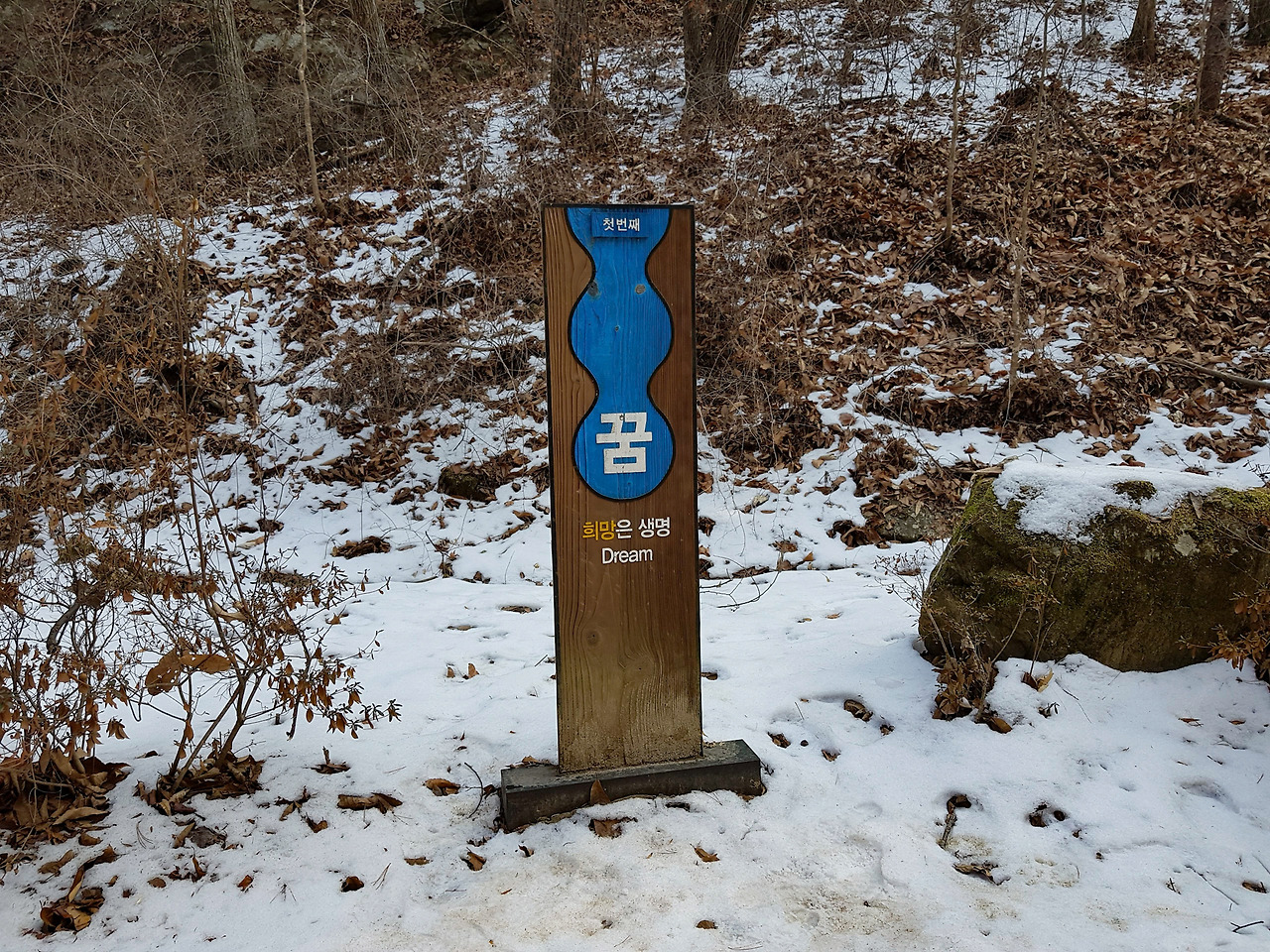 봄내길 1코스에서는 김유정 소설에 관한 이야기들이 있었다면 2코스에서는 ㄲ로 된 한 글자 말들이 이어진 구곡혼이라는 9개의 목판이 있다. 그 첫번째는 꿈이다.