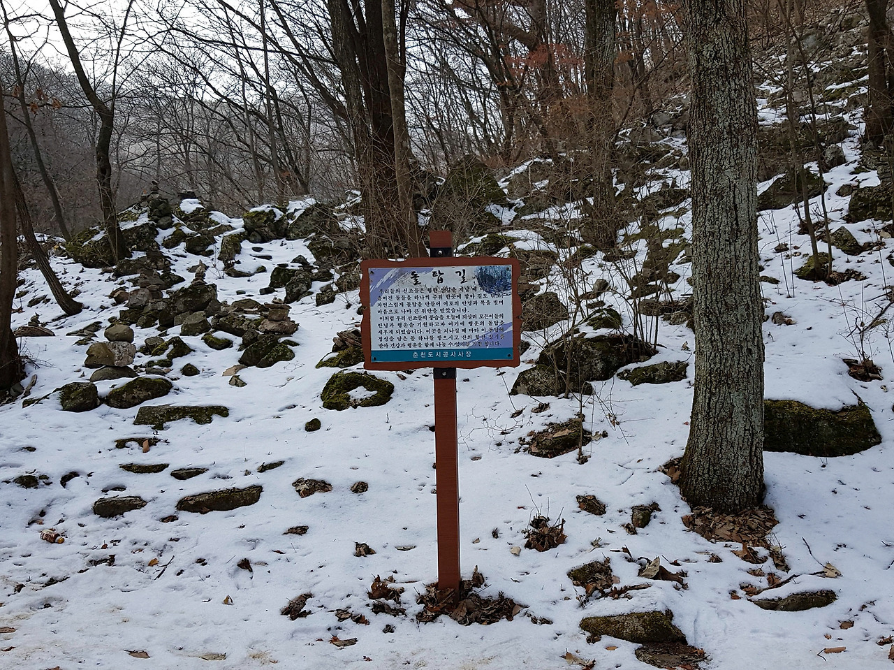 지난 번, 겨울의 초입에 봄내길 1코스를 다녀왔다. 이름이 봄내길이라 봄에 가면 좋겠지만 겨울의 한 가운데에서 날이 맑을 때 가볍게 걸을 수 있는 곳이기도 하기에 오늘은 봄내길 2코스를 다녀오기로 한다.