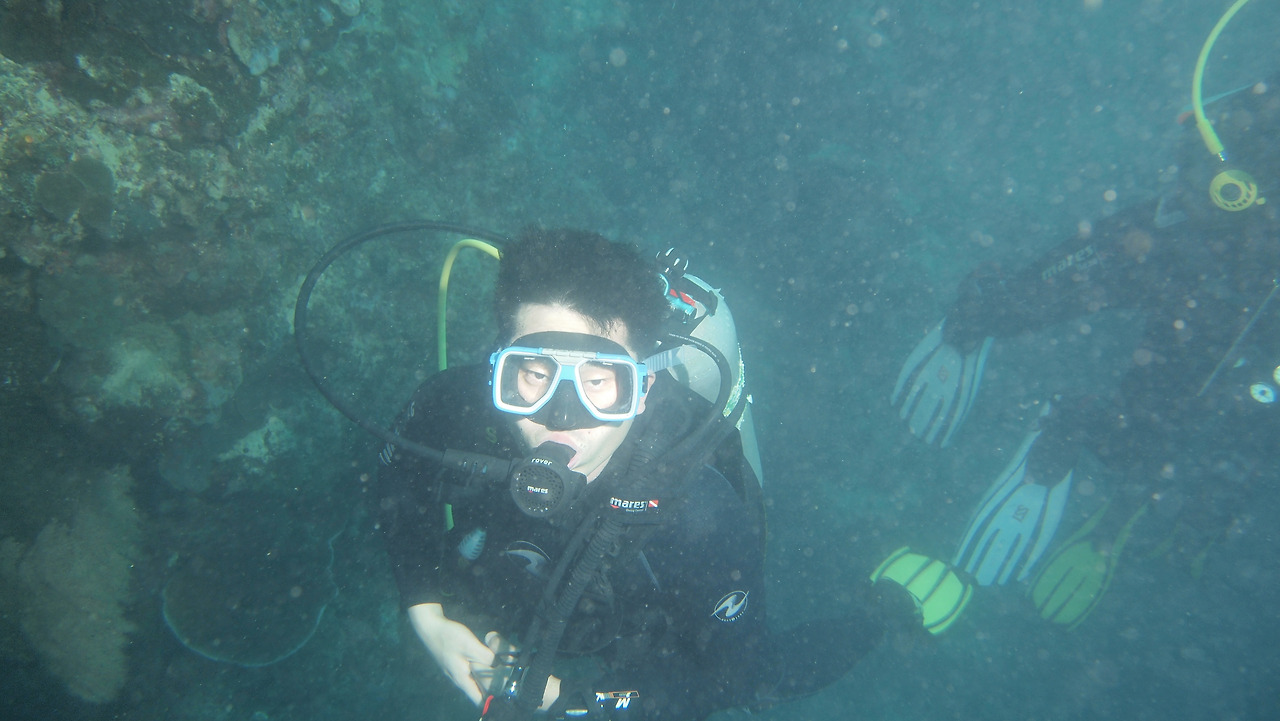 사장님이 사진을 찍어주신 덕분에 다이빙 사진이 많이 생겼다. 이번 다이빙 포인트는 추락한 비행기를 볼 수 있는 곳인데 하필 다른 다이빙 그룹들이 여럿 몰려서 비행기에서 벗어나 해저 벽면을 따라 가는 월 다이빙을 했다. EAN32와 36에 맞춰 한계 수심 아래도 내려가지 않는 것이 중요하다. 일반 공기통을 쓸 때도 마찬가지이지만 EAN공기통을 사용할 때도 다이브 컴퓨터는 필수라 할 수 있다.