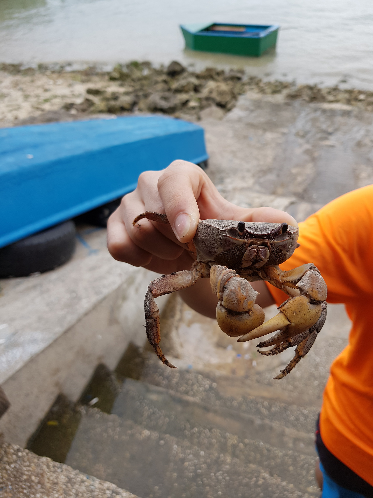 교육을 마치고 다이빙 샵 앞의 길 가를 서성이던 다친 게를 재현씨가 발견했길래 내가 잡아서 물 근처에 놓아준다. 어짜피 크게 다쳐서 오래 살 수 있을 것 같지는 않다.