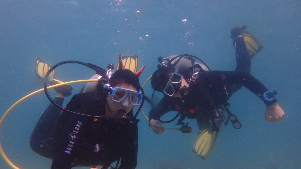 오늘은 다이빙을 4번 했다. 이제 다이빙 자체에 매우 익숙해진 느낌이다. 지난 번에 사람들이 너무 많이 몰려서 제대로 즐기지 못했던 포인트인 추락한 비행기에 오늘은 우리 팀 뿐이다. 함께 들어간 다른 분이 마침 내 동영상을 남겨주셨다.