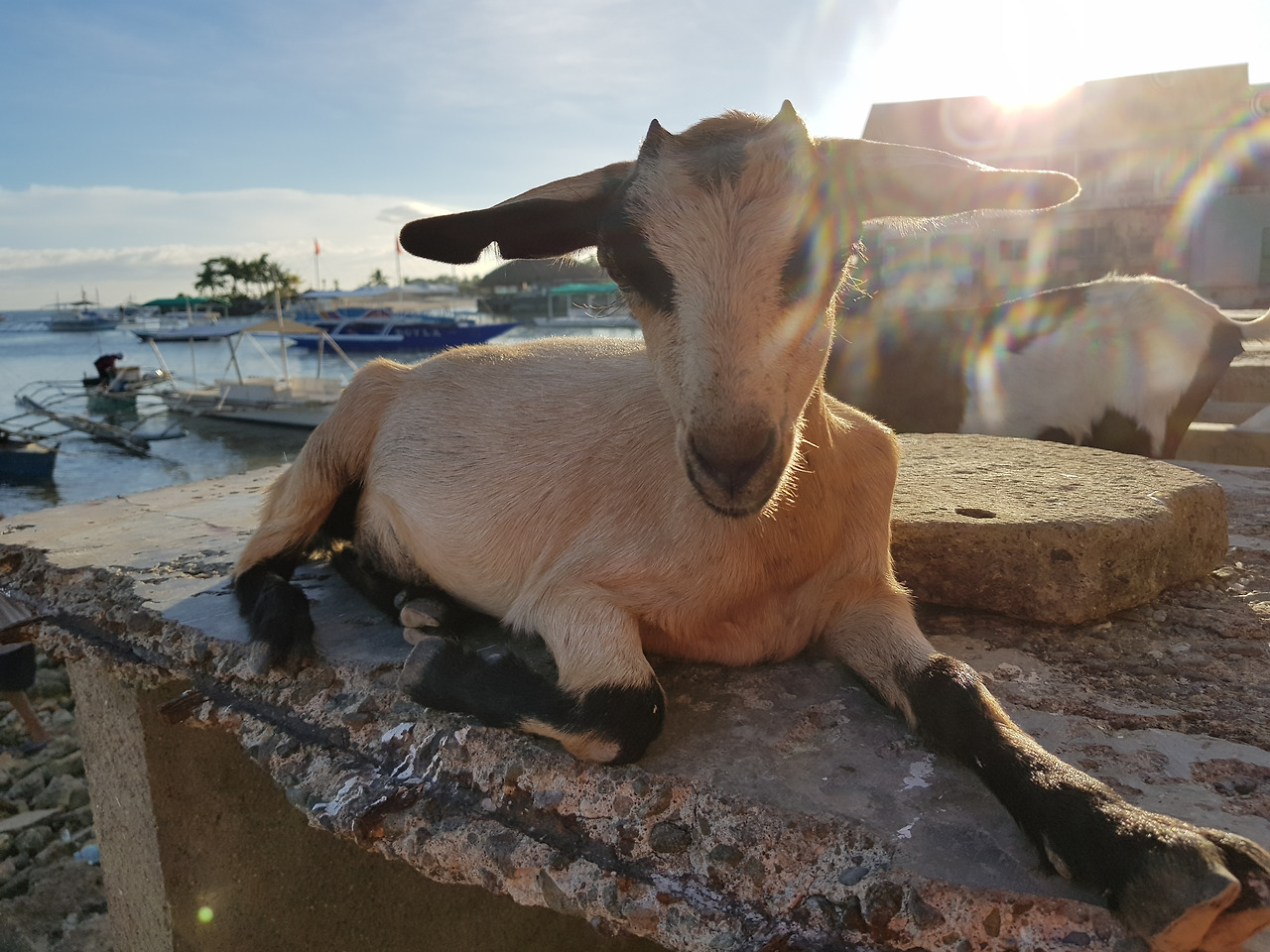 다이빙 샵 앞에는 시멘트로 된 탁자가 있는데 햇빛 따듯한 낮에는 보통 염소들이 점령하고 있다.