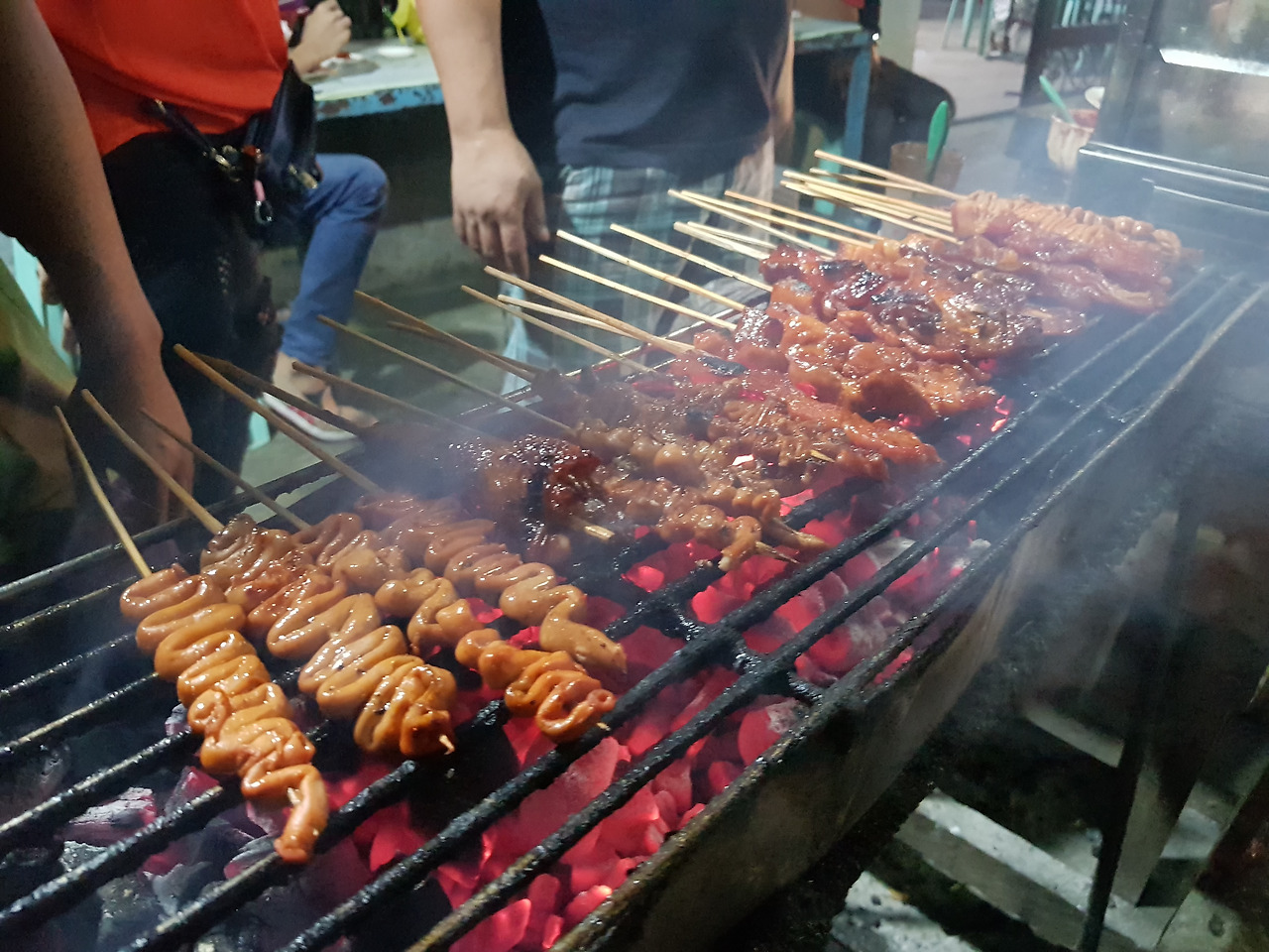 저녁을 먹었으니 이제 마사지할 시간이다. 마사지샵에 가는 길에 길거리 가게치고는 나름 깔끔해보이는 꼬치구이집에서 돼지고기 꼬치를 하나 사먹어봤는데 꽤 맛있다. 가격은 20페소(400원)...