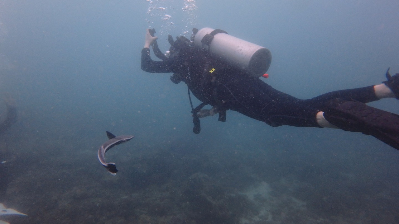 올랑고섬 앞바다는 위에서 보는 것만큼 맑지는 않았다. 그래도 막탄섬 앞바다와는 다른 느낌이 있기에 충분히 만족스럽다. 어디선가 나타난 빨판 상어 한 마리가 우리 근처에 와서 배회한다. 이 녀석은 큰 물고기 밑에 붙어 다니는 물고기인데 큰 물고기가 없으면 배나 다이버에게도 붙으려고 한다.