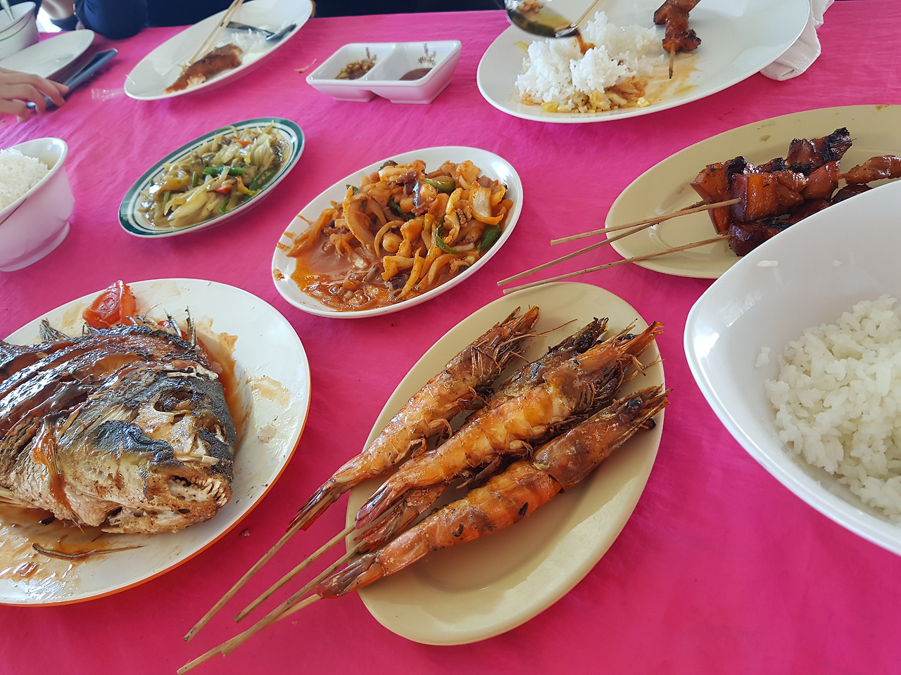 1인당 500페소에 커다란 물고기, 새우, 게, 오징어, 소라에 돼지고기 바베큐 꼬치까지 나온다. 맛있게 배부르게 잘 먹었다.