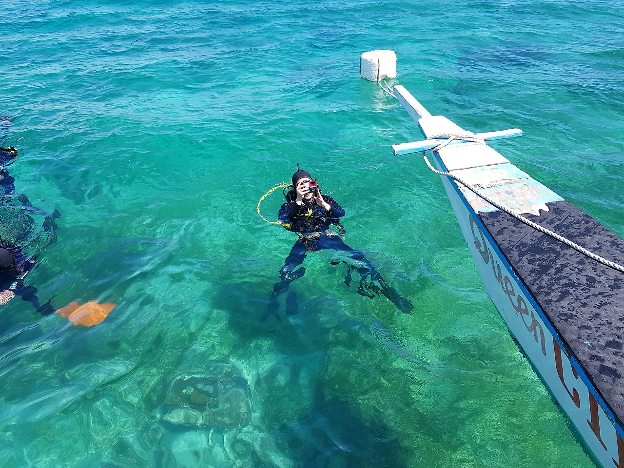 내가 5일 간 다이빙 교육을 받는 동안 지니님은 나와 함께 다이빙하기도 했지만 펀다이빙 그룹과 여기저기 근처 해역에서 펀다이빙을 하기도 했다. 이제 슬슬 조금 떨어진 지역을 가보고 싶으니 이번에는 막탄섬에서 가까운 올랑고섬 쪽에 가기로 한다. 이제 나도 어드밴스드 스쿠바 다이빙 자격을 얻었으니 함께 다닐 수 있다.