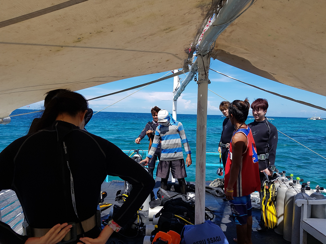 마지막 다이빙이 끝났다. 이제 다시 막탄섬의 다이빙샵으로 돌아가야 한다. 막탄 앞바다와는 다른 풍경과 많은 물고기들을 보니 즐거웠다.