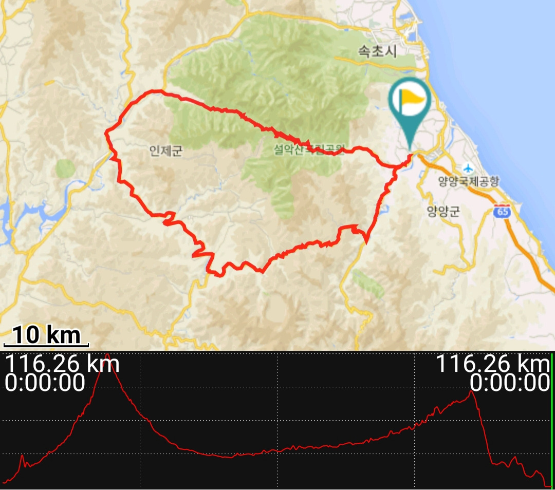 120km에 달하면서 한계령을 넘어가야 하는 조금 힘든 코스였다. 오랜만의 장거리라 더욱 만만치 않았지만 설악산과 내린천을 즐길 수 있는 멋진 코스임에 틀림없다.