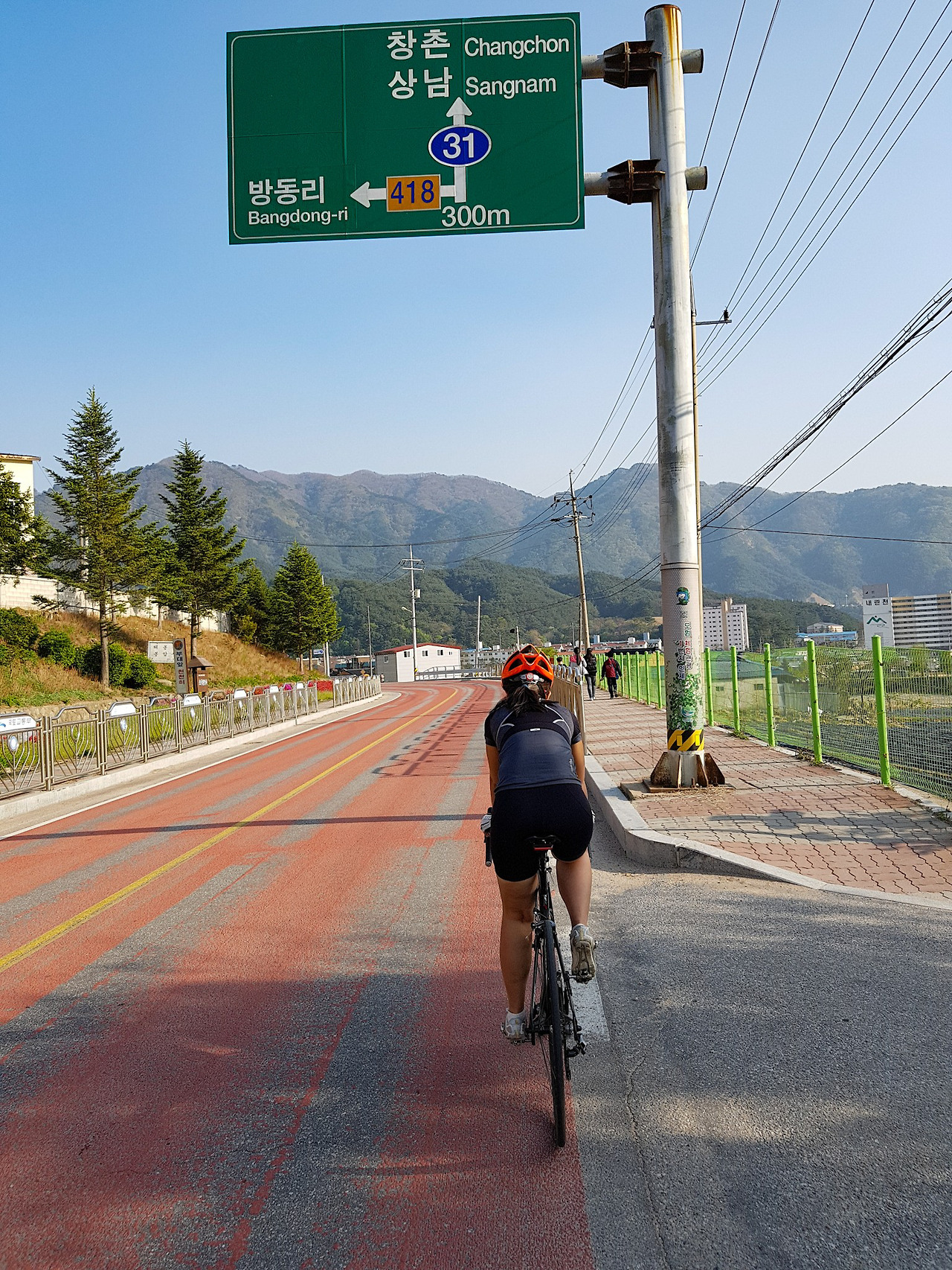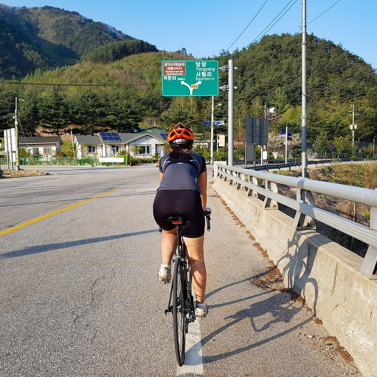 원통읍내의 출입구인 원통 교차로에서 직진해서 원통교를 건너면 아까 한계교차로에서 시작되는 내설악 하이트래킹웨이라는 자전거길이 있다. 44번 국도 바로 옆에도 자전거길이 있지만 광치령 가는 광치령로 초입에서 끊기기 때문에 이쪽을 이용하는 것이 편하다.