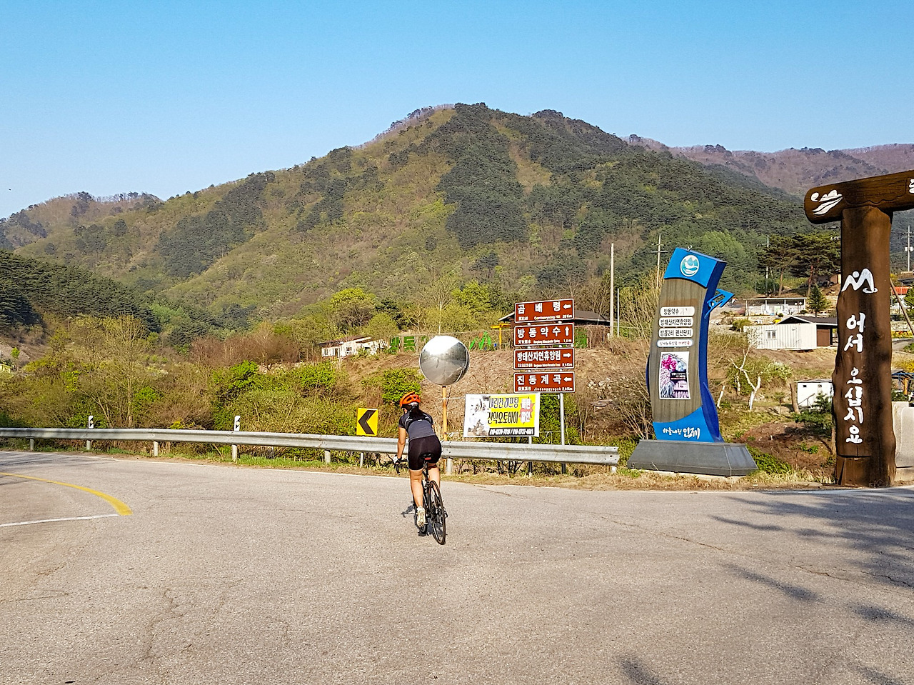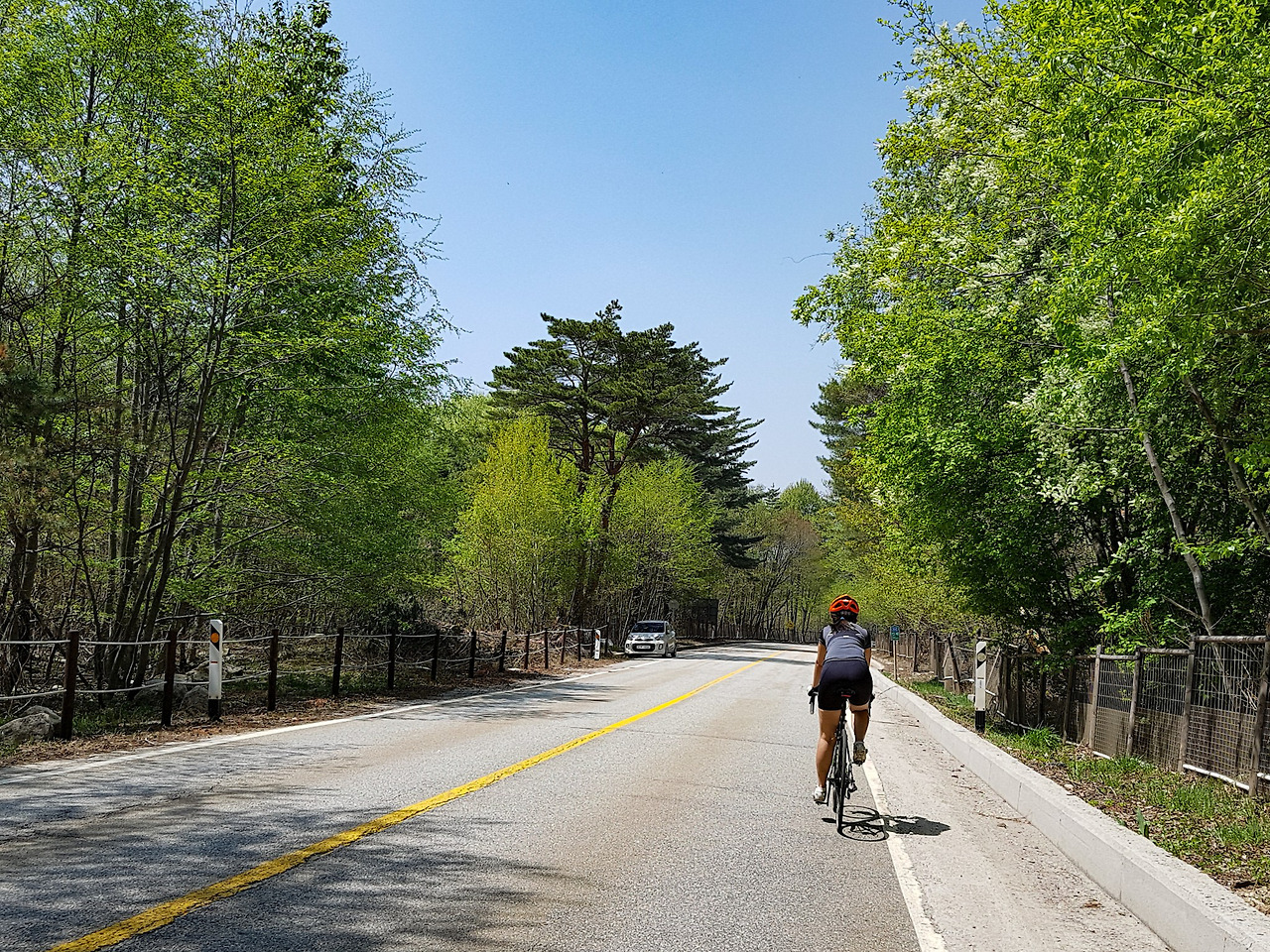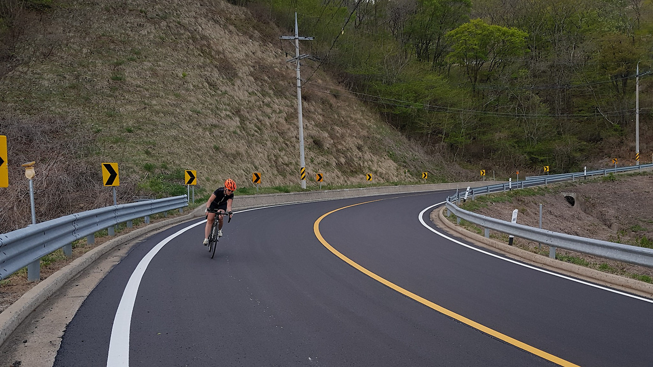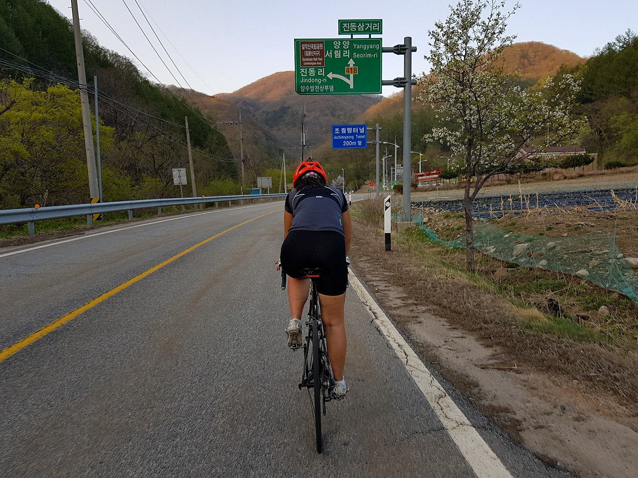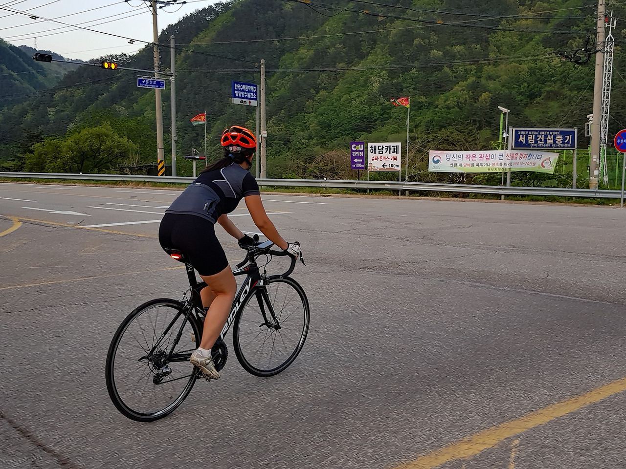 한계교차로까지 내려오면 44번 국도와 만나게 된다. 여기서 내설악 하이트래킹웨이라는 자전거길이 인제 읍내까지 이어지니 차들과 함께 달리기 싫으면 자전거길을 탈 수도 있다. 우리는 원통에서 점심을 먹어야 하니 44번 국도를 잠깐 타고 원통으로 간다.