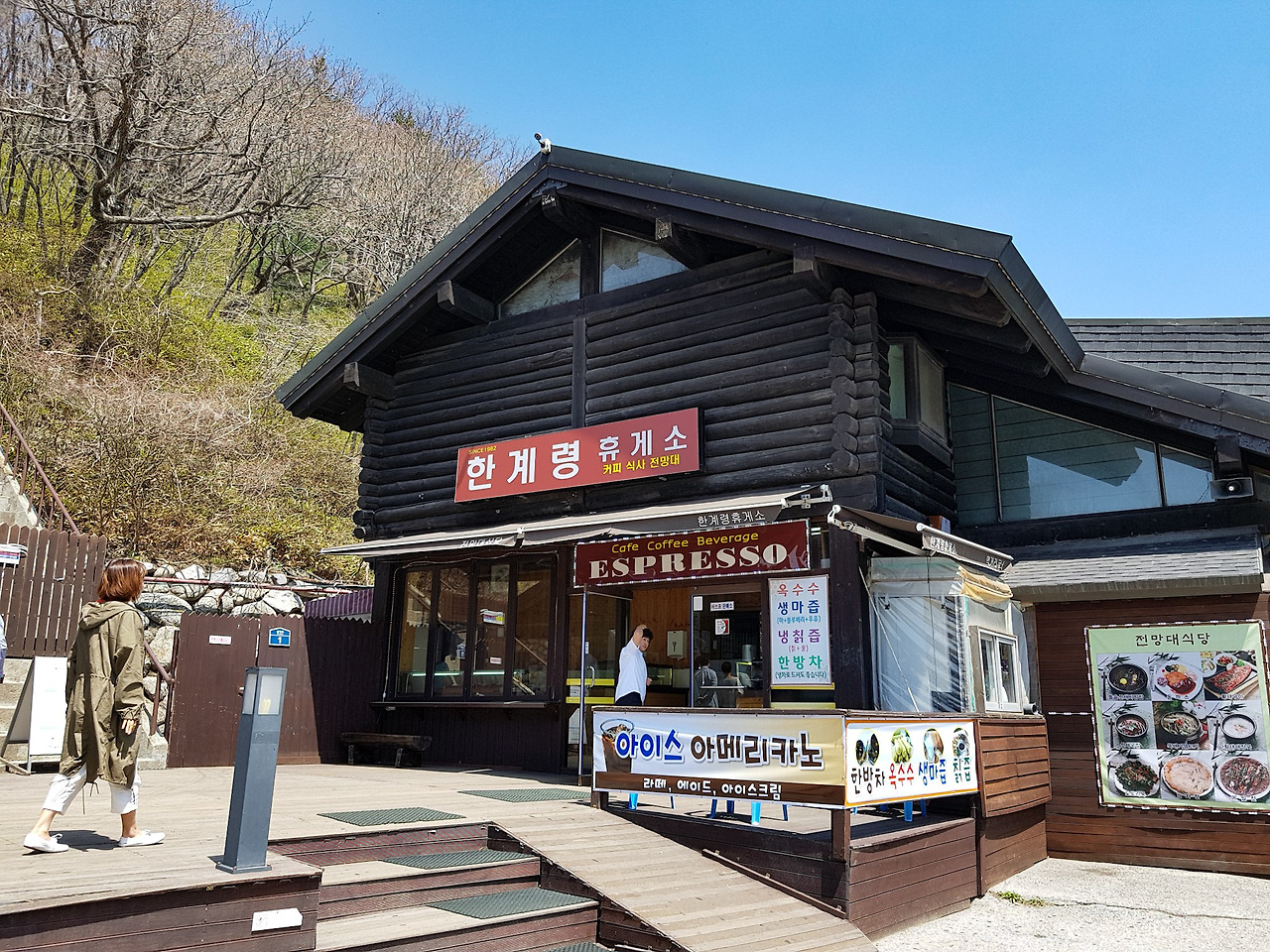 한참을 쉬지도 않고 올라왔으니 유명한 건축가 김수근이 지었다는 한계령 휴게소에서 음료를 사다 마신다.